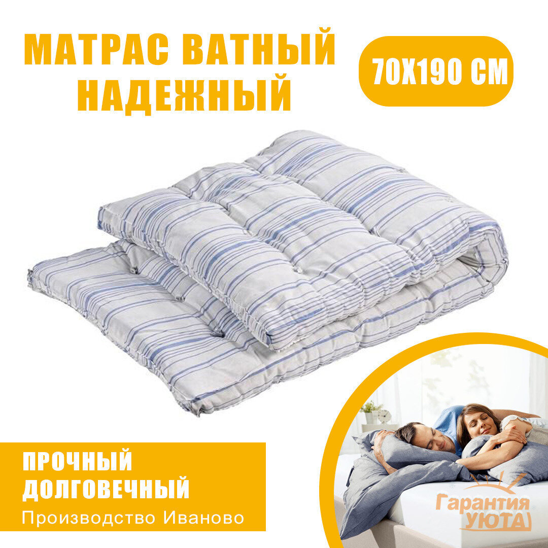 Матрас ватный Гарантия Уюта РВ Надёжный, чехол тик, 70*200, толщина 8 см,