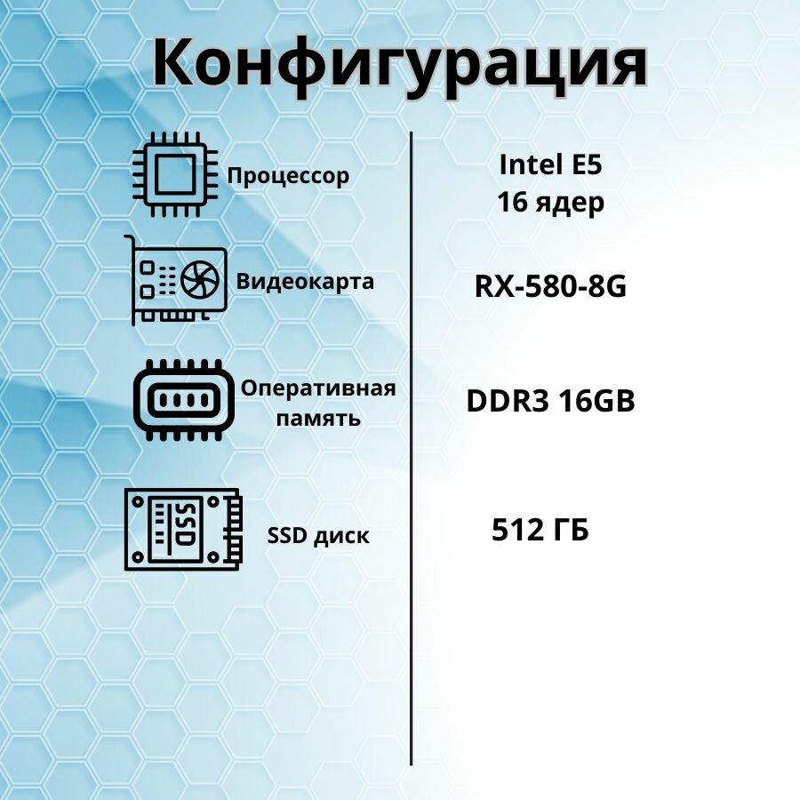 Компьютер Игровой intel E5/16GB/Видео-8G/SSD-512G/Монитор 27"