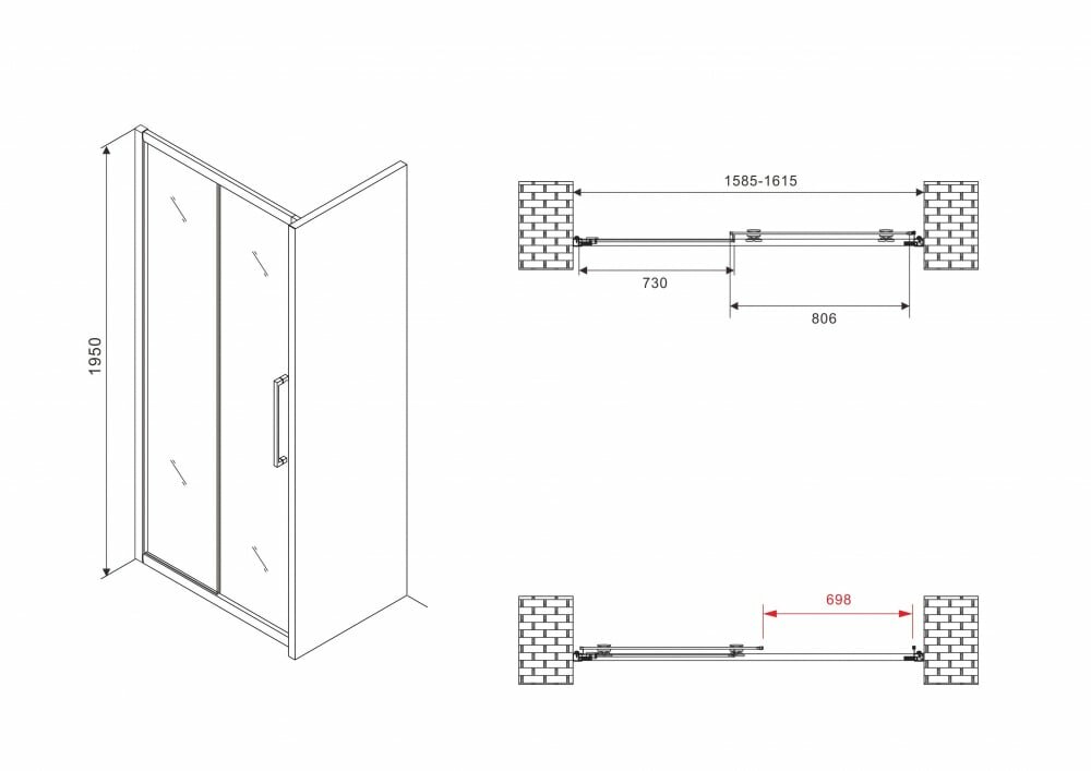 Душевая дверь Abber Schwarzer Diamant 160 см AG30160MH