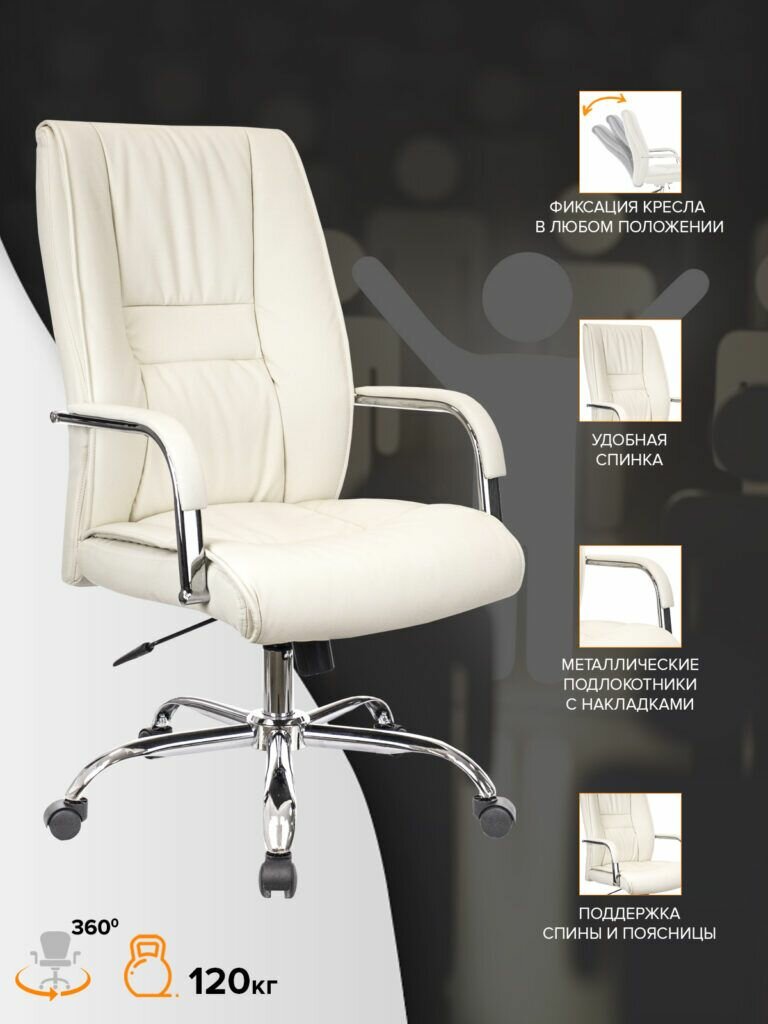 Кресло руководителя Everprof "Rio M", экокожа, бежевое, хромированная крестовина