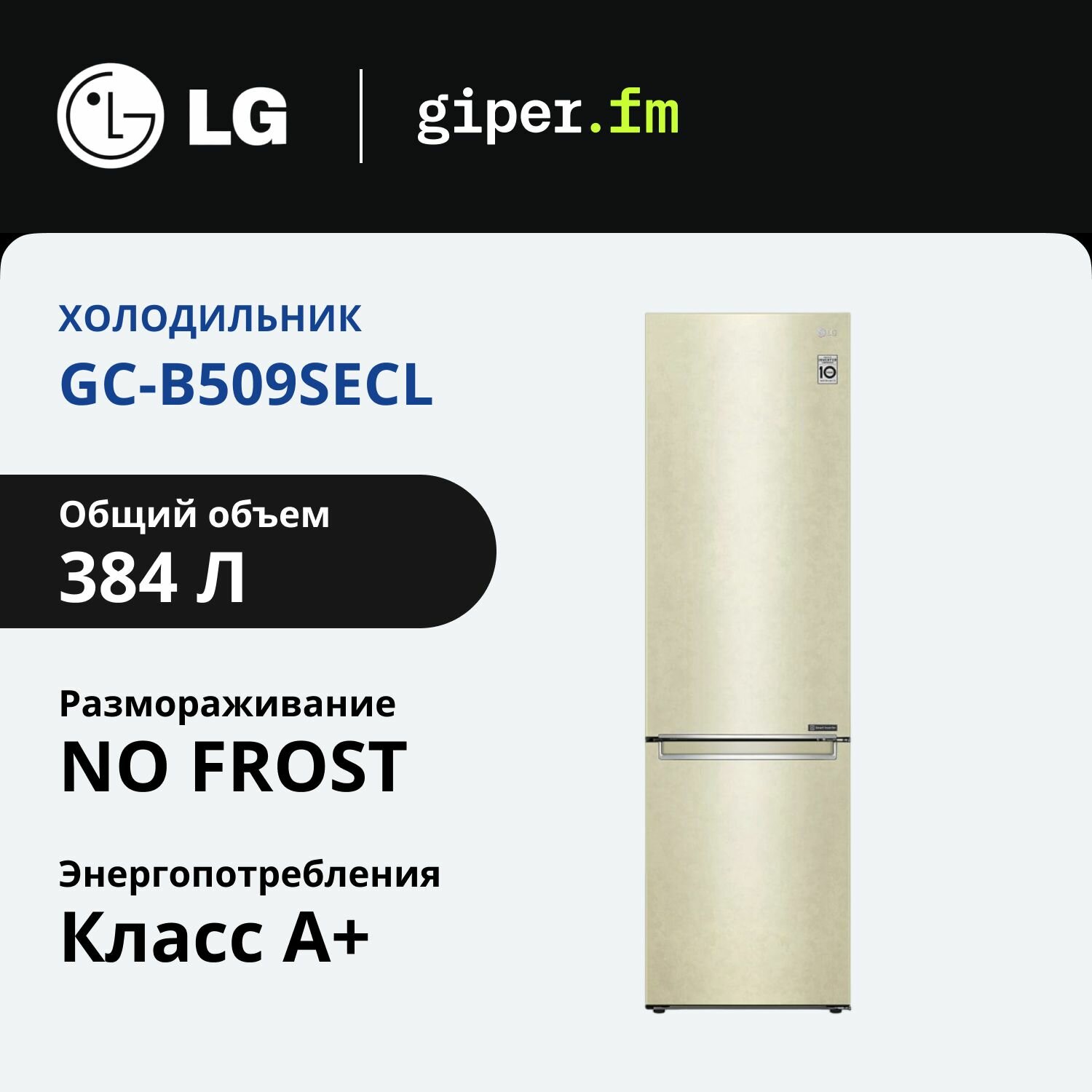 Холодильник LG GC-B509SQCL, двухкамерный, No Frost, инверторный, A+, белый