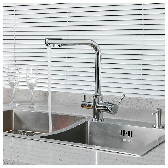 FRUD R43053, Смеситель для кухонной мойки под фильтр с краном для питьевой воды (поворотный излив, латунь, хром)
