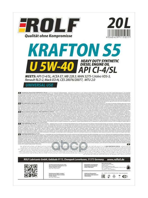 ROLF ROLF Масло моторное ROLF KRAFTON S5 U 5W-40 20 л 322479 ROLF 322479