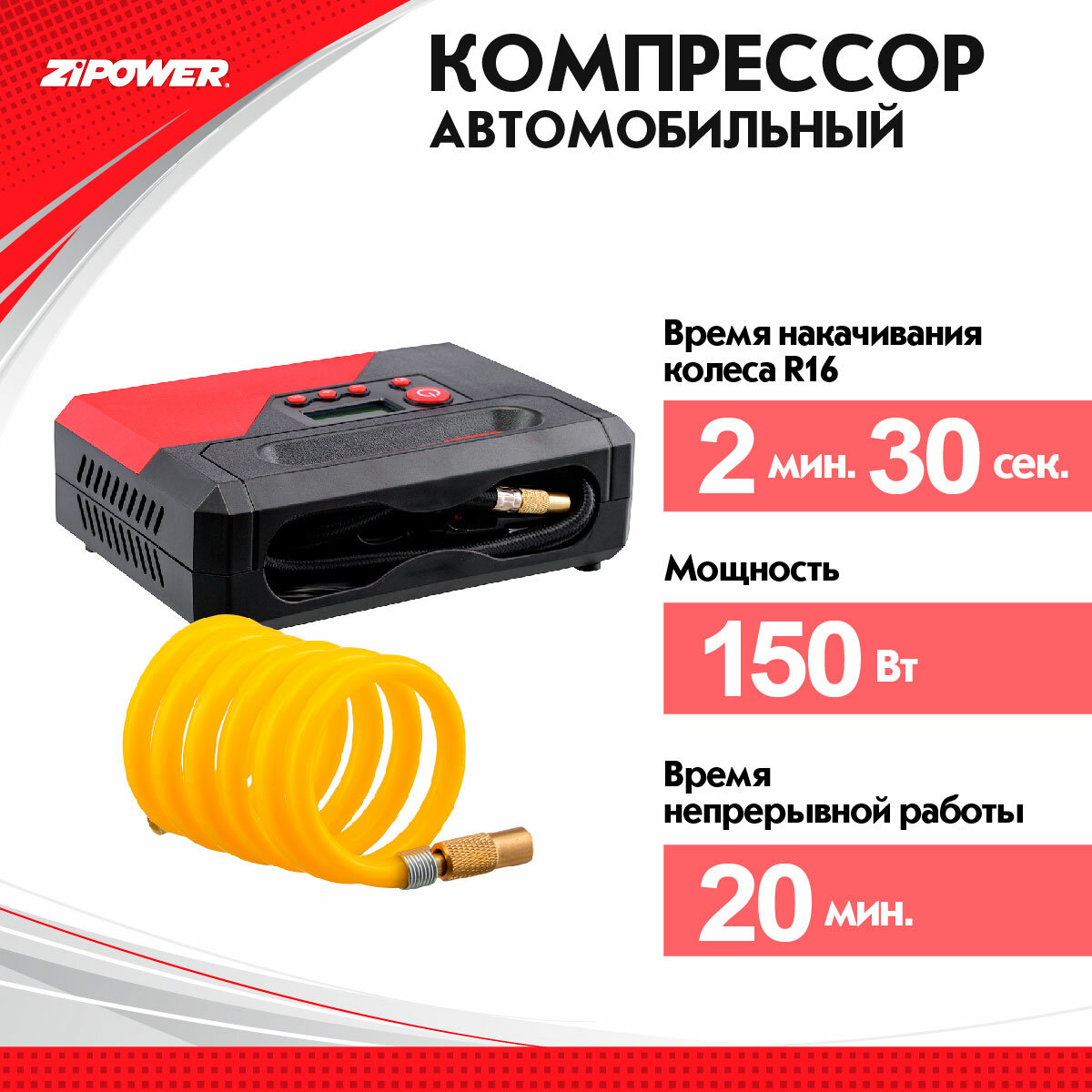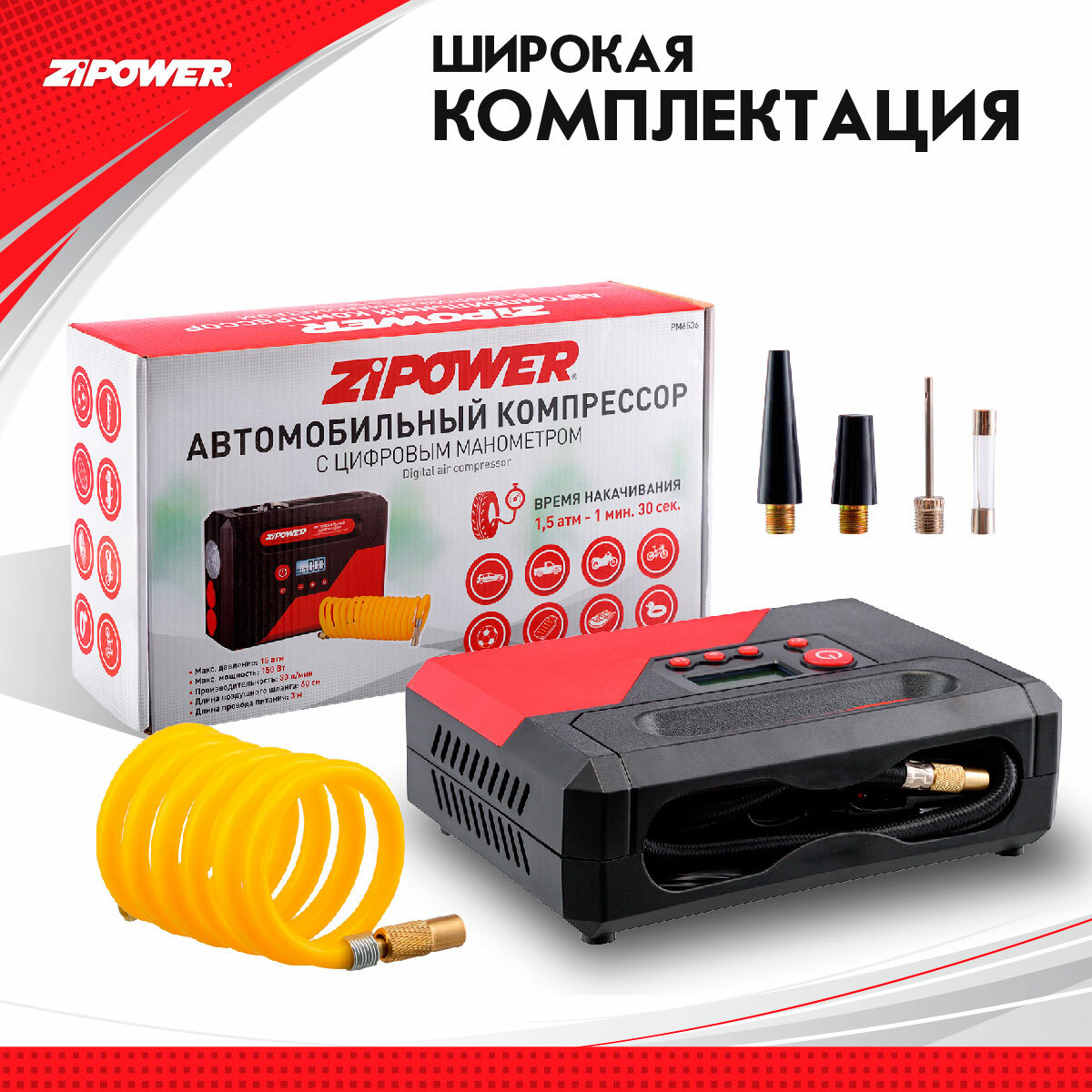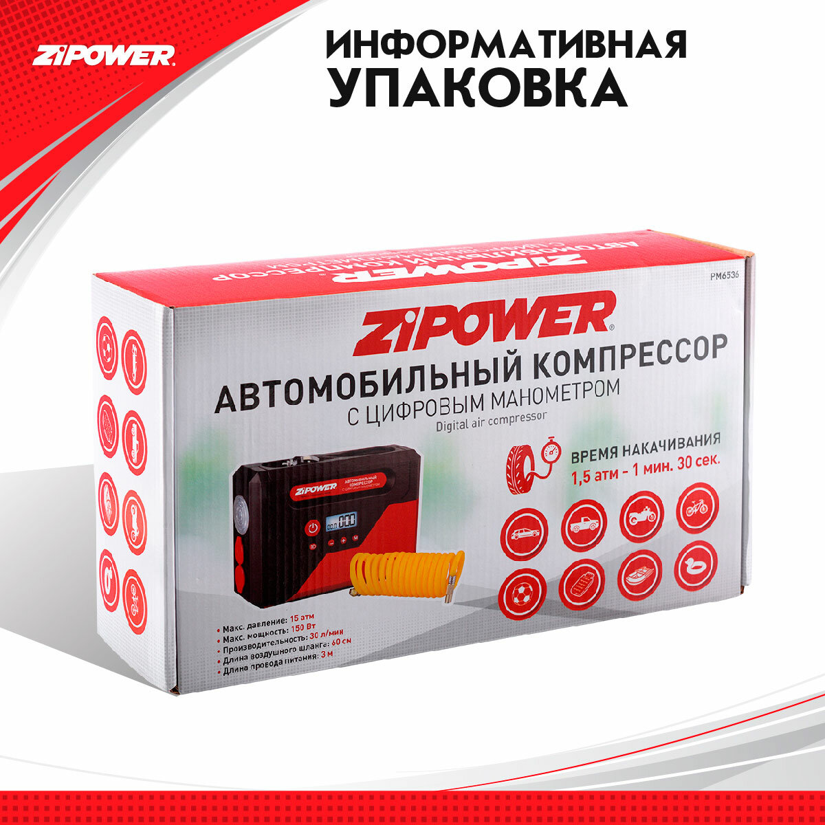 ZIPOWER PM6536 Компрессор ZIPOWER PM6536 30 л/мин 150 Вт 15 атм