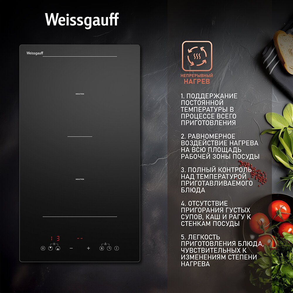 Индукционная варочная панель с инвертором Weissgauff HI 32 BSCM Flex, 3 года гарантии, таймер, защитное автоотключение, блокировка от детей
