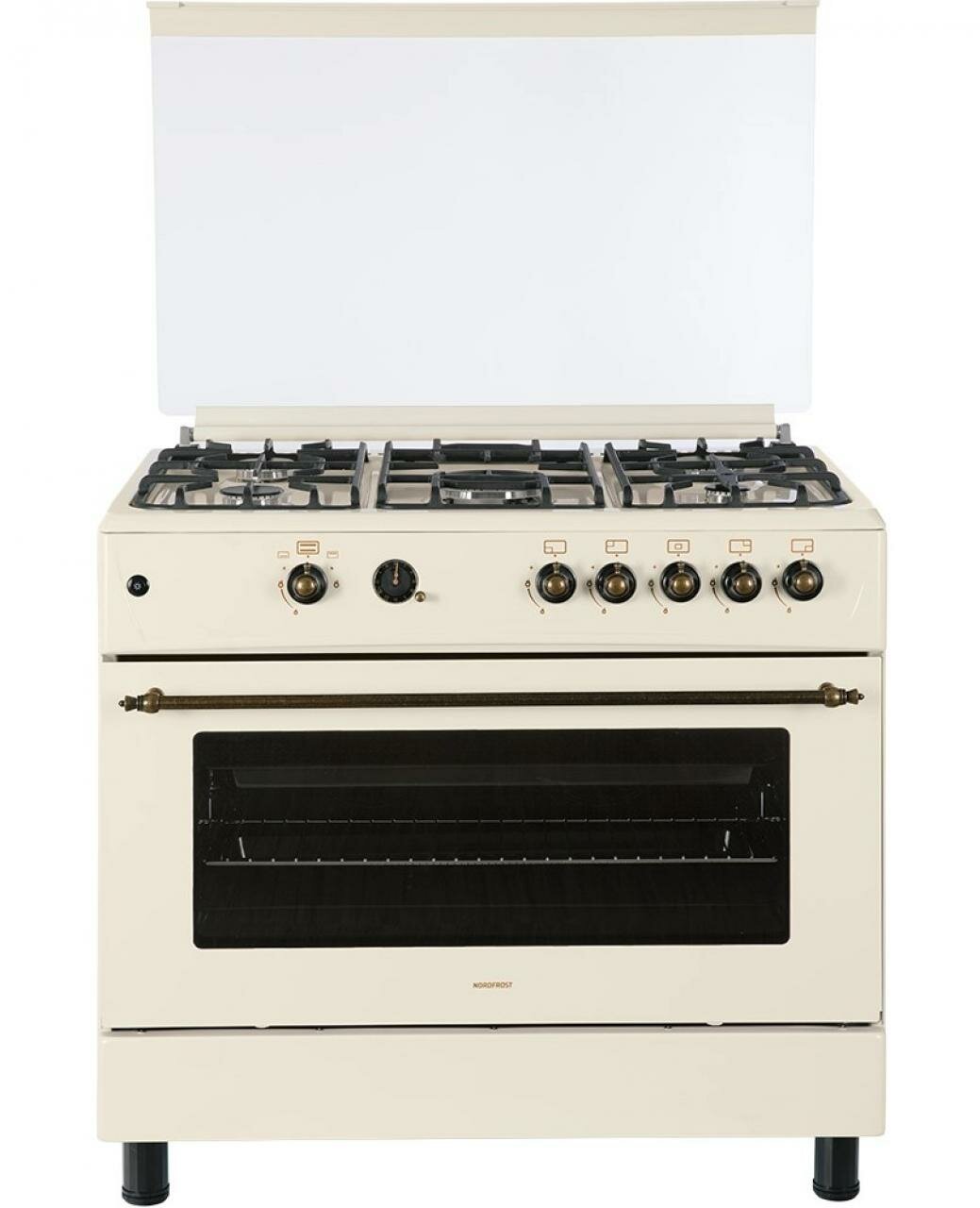 Газовая плита NORDFROST GG 9064 YR, 110 литров, авторозжиг, газ-контроль, бежевый, ретро
