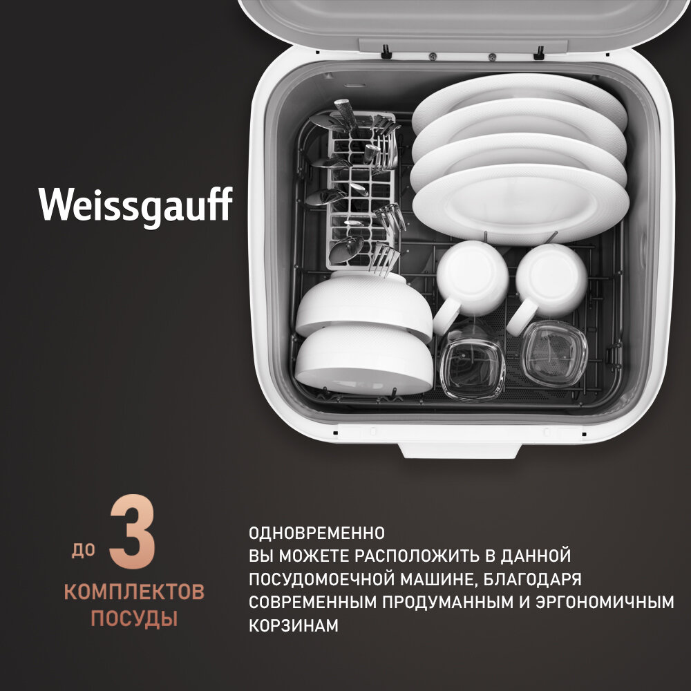Компактная посудомоечная машина Weissgauff TDW 4057 Mini Turbo Dry, белый