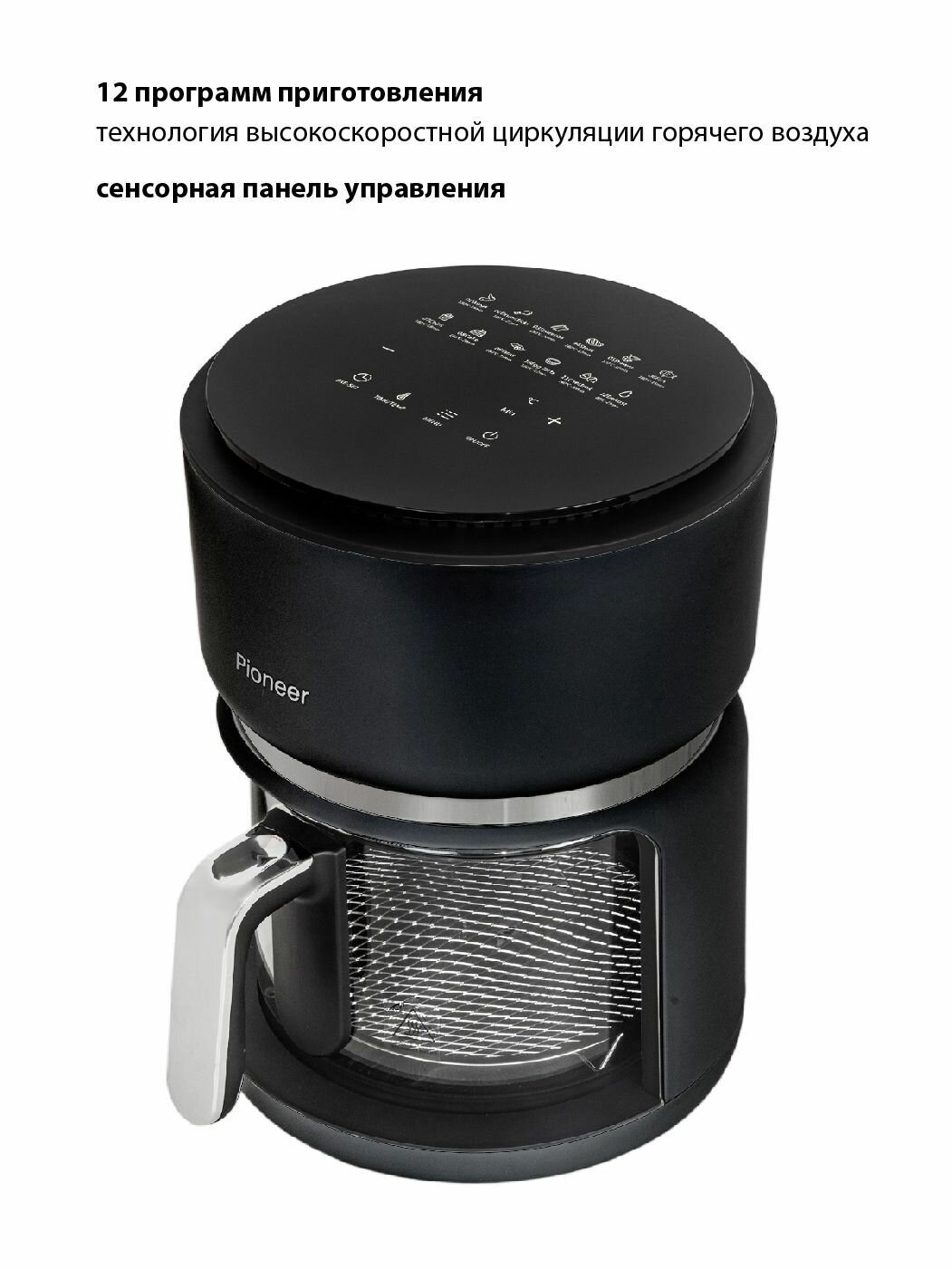 Аэрогриль Pioneer 3 л для приготовления без масла и жира, точная настройка времени и температуры, 12 программ, гриль, жарка, выпечка, 1500 Вт