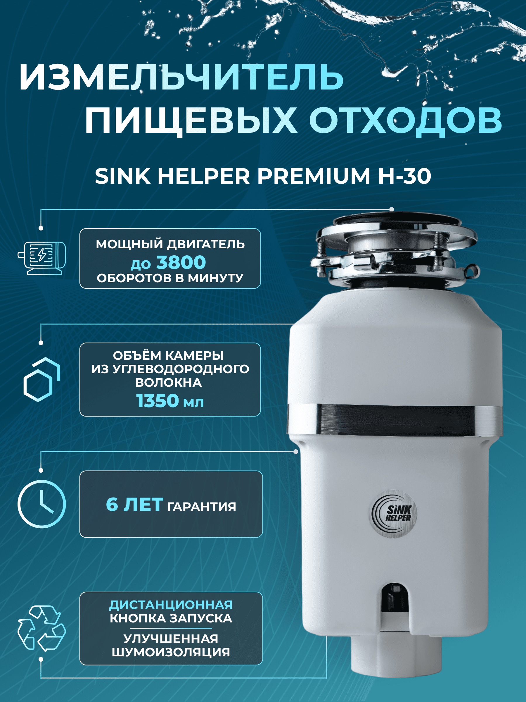 SINK HELPER Измельчитель пищевых отходов Premium H-30 интересное: