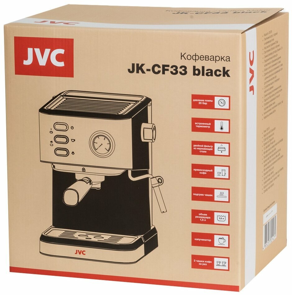 Кофеварка JVC JK-CF33 black (рожковая, эспрессо, капучинатор, 20 Бар)