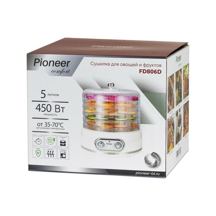 Сушка для овощей и фруктов Pioneer FD806D, 5 поддонов, белый