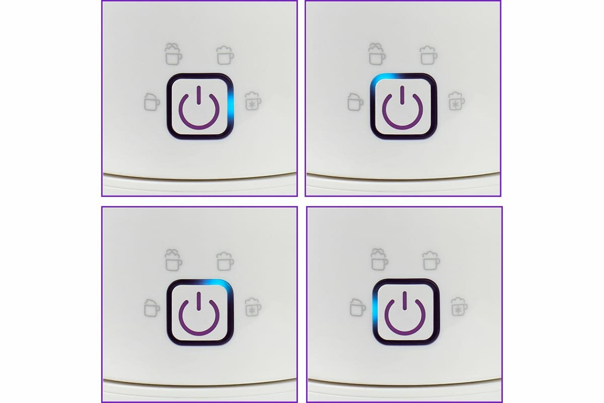| Плюсы: | Красивый, быстро вспенивает, в комплекте две насадки. Пена получается отличная. Устройство на подставке, не надо отключать от розетки, чтобы помыть. Взбивали 3,2% молоко, на 4 последнем режиме. |