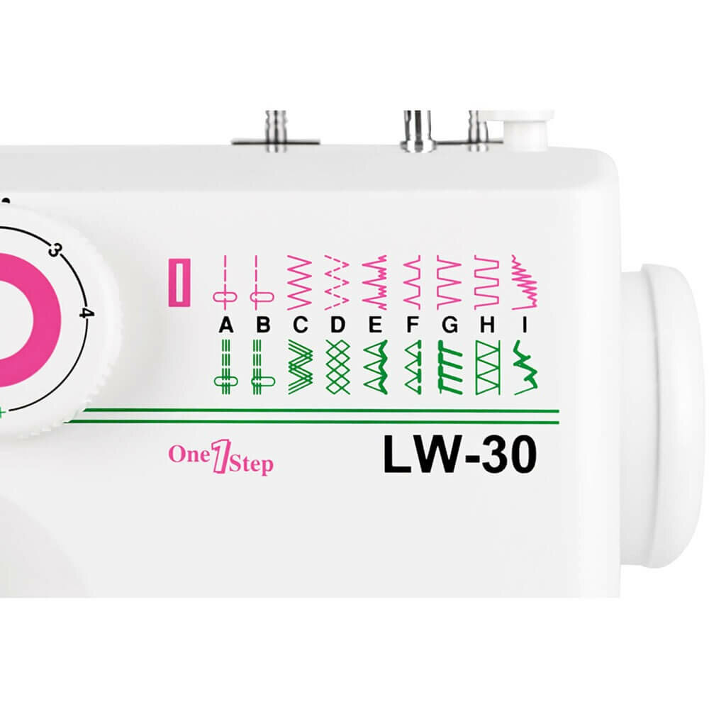 Швейная машина Janome LW-30 белый, 19 швейных операций, 4 мм, 5 мм, 7 кг, 0.45x0.22x0.34 м, 0.03366 м3, 7 кг