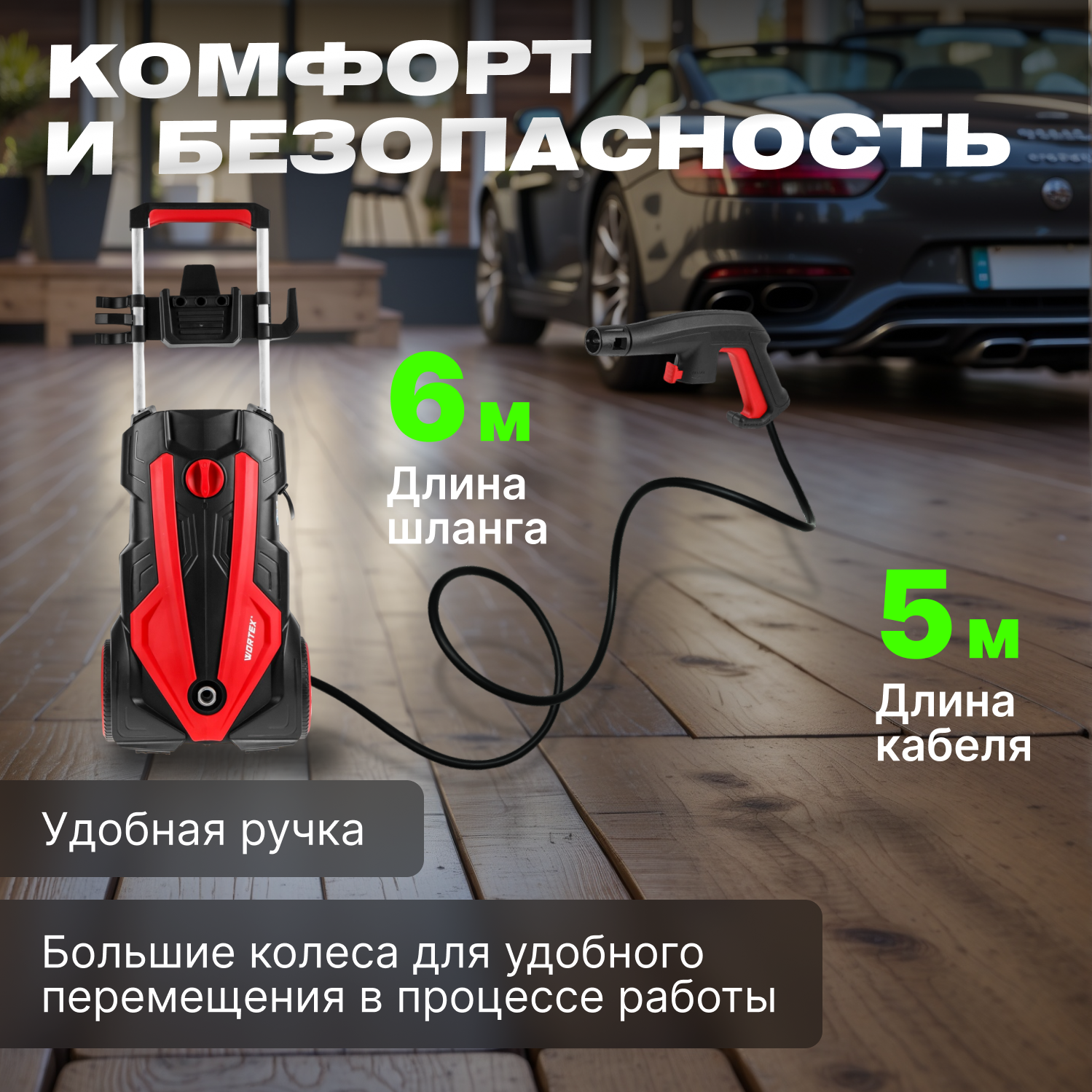 Очиститель высокого давления WORTEX PW 1620 2.20 кВт, 165 бар, 450 л/ч (мойка высокого давления, автомойка, ф-ция самовсасывания, шланг 6 м) (0318312)