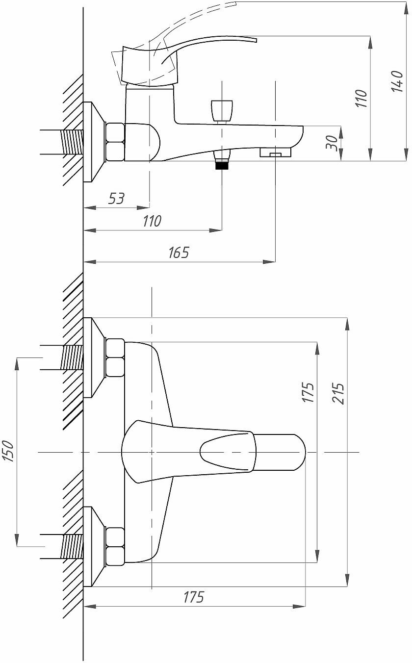 Смеситель для ванны Профсан Плюс ПСМ-815-023, однорычажный, хром