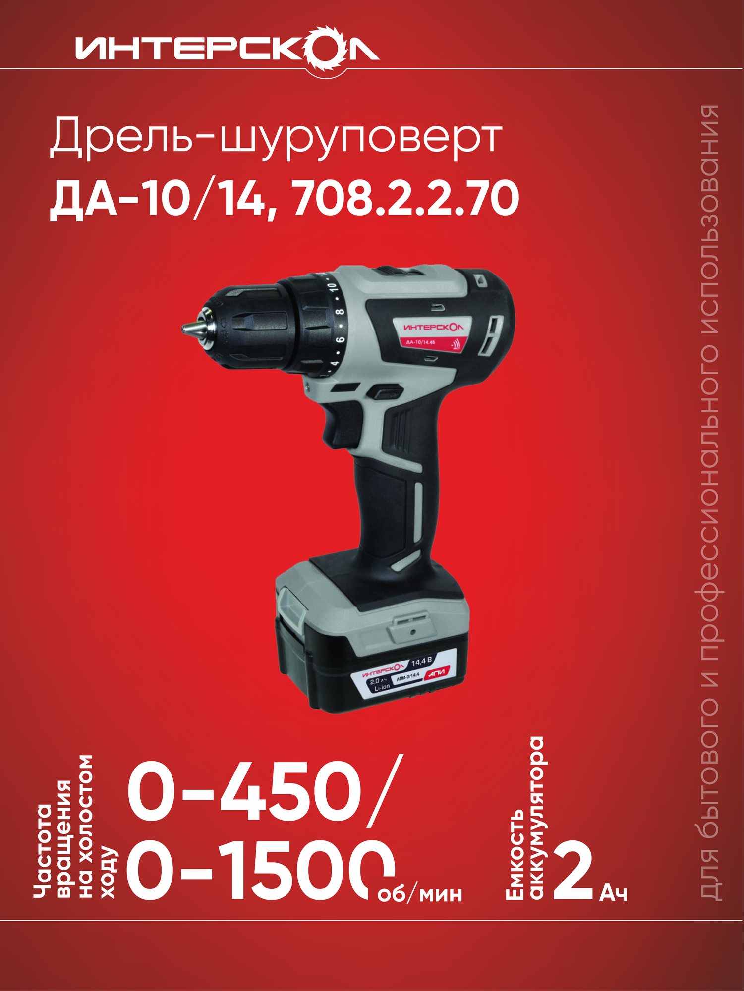 СохранитьАккумуляторная дрель ИНТЕРСКОЛ ДА-10/14,4В 708.2.2.70 интересное: