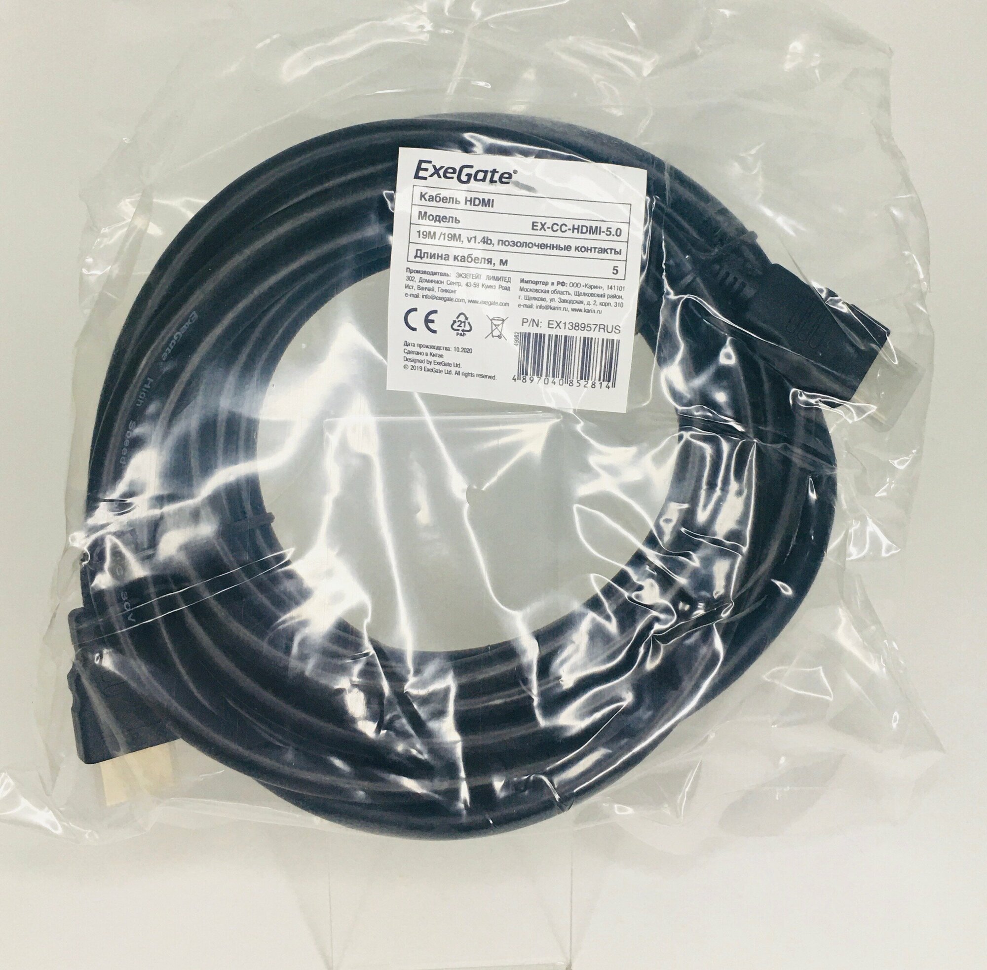 EXEGATE EX138957RUS Кабель HDMI 19M -19M 5м , v1.4b, позолоченные контакты