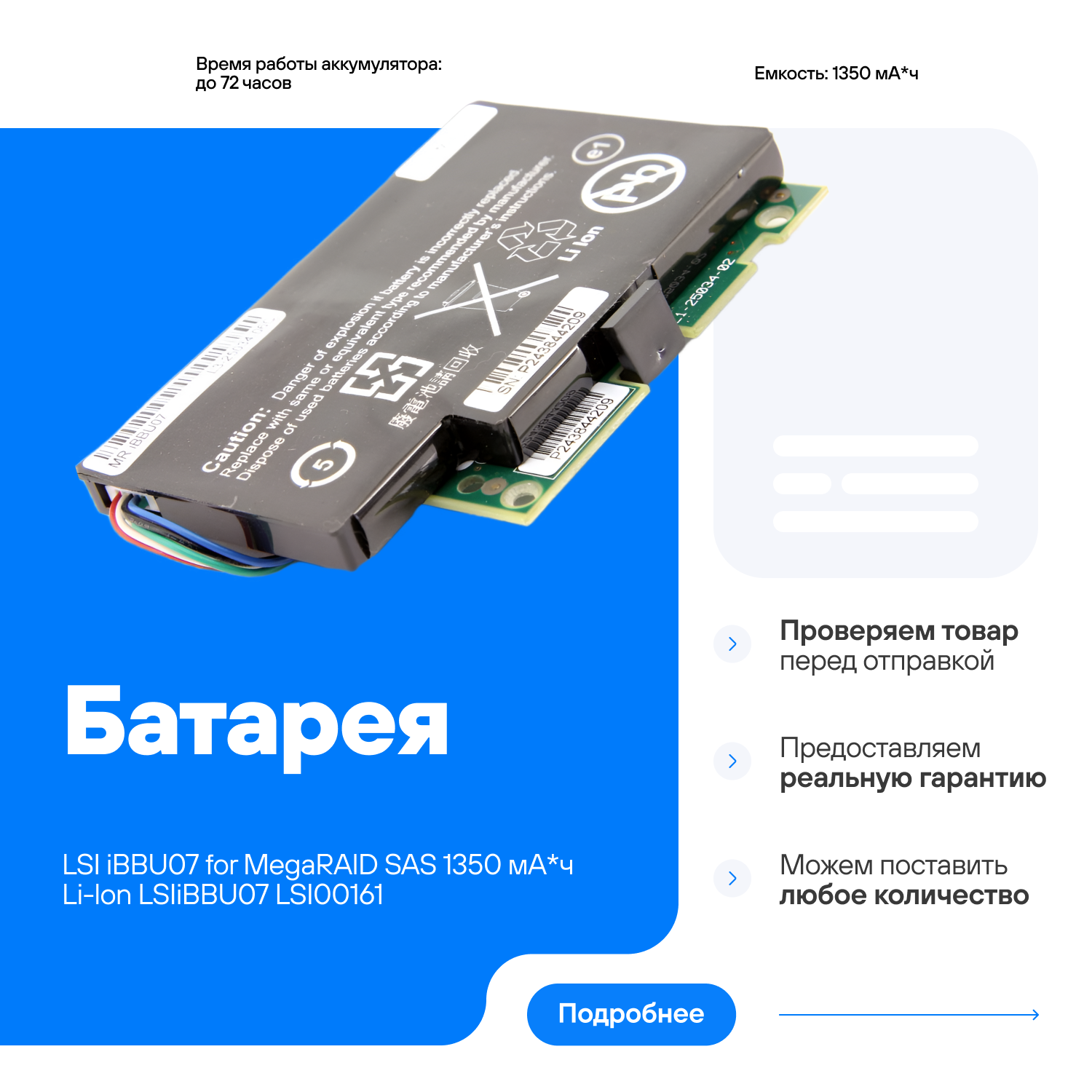 Батарея LSI iBBU07 for MegaRAID SAS 1350 мА*ч Li-Ion BBU07 LSI00161 L3-25034-03F аналог Intel AXXRSBBU7