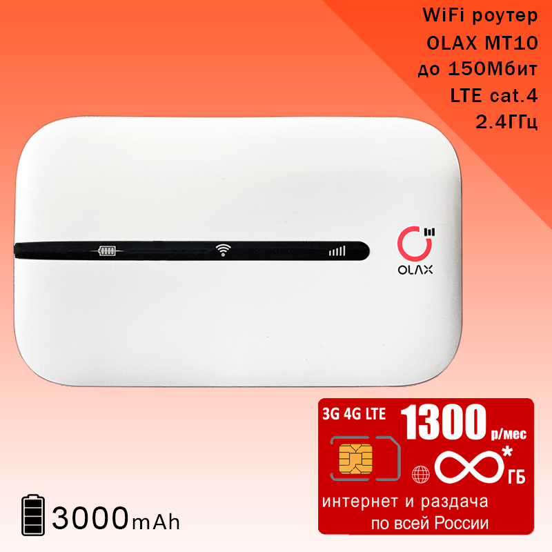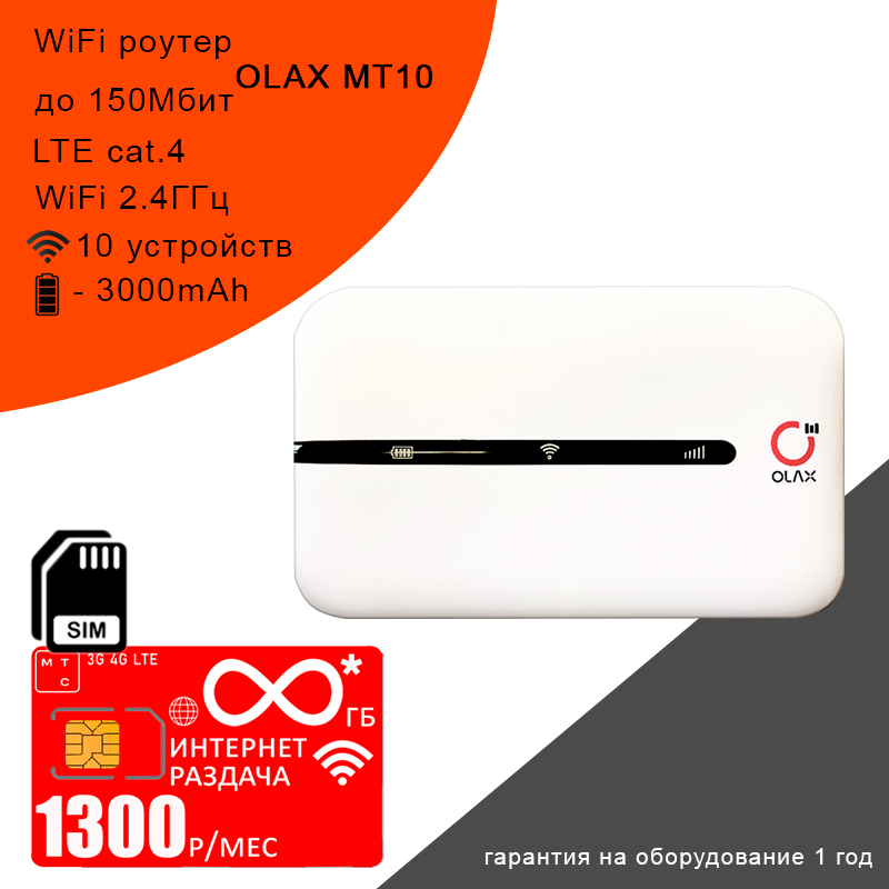 Купить Wi-Fi роутер Olax MT10 + сим карта с безлимитным** интернетом и раздачей в сети мтс за 1300р/мес