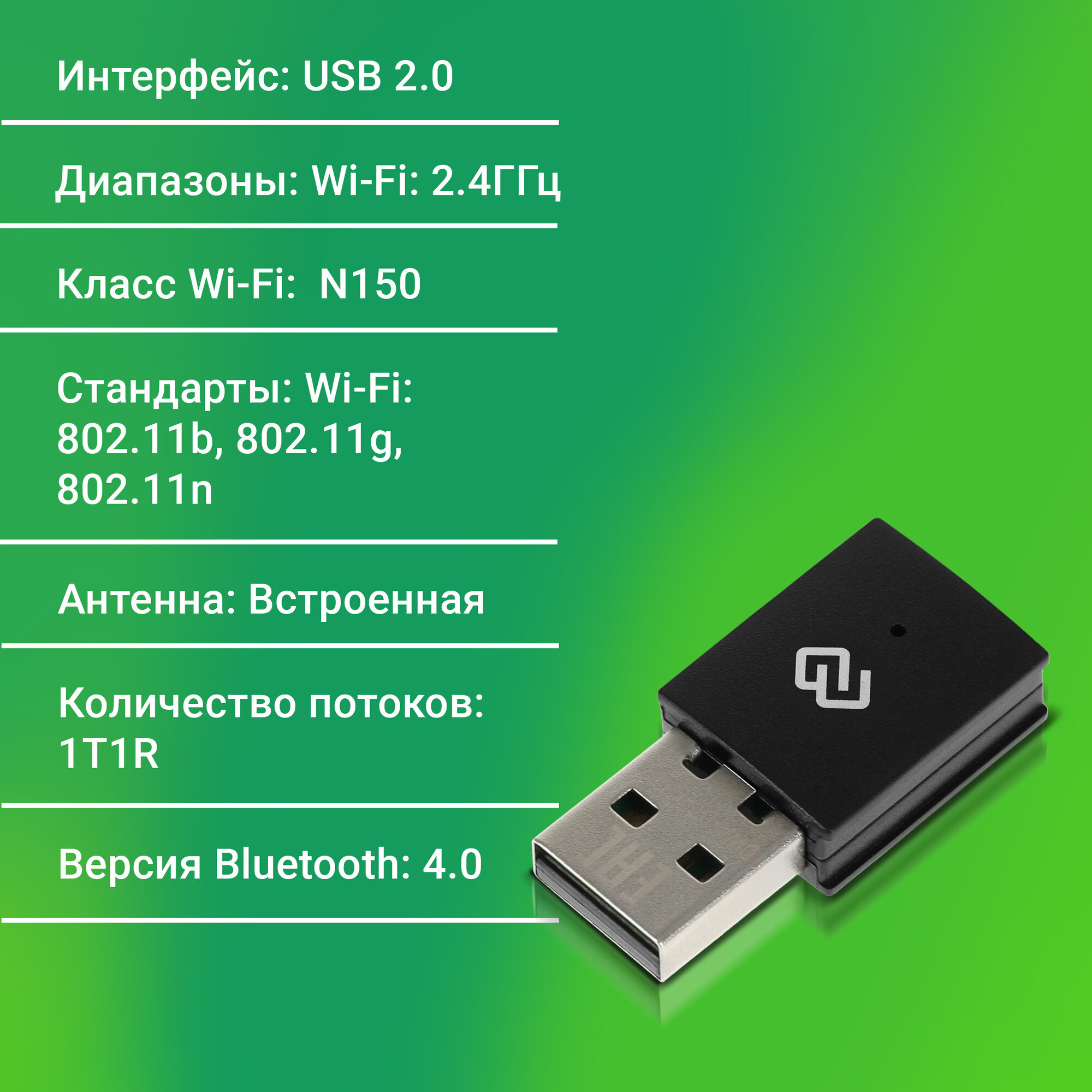 Wi-Fi + Bluetooth адаптер Digma DWA-BT4-N150, USB 150 Мб/с, 2.4GHz, 802.11b/gn, черный