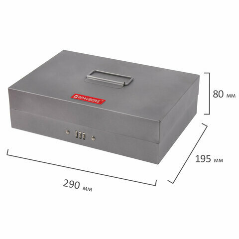 Квант продажи 1 ед. Ящик для денег, ценностей, документов, печатей, 80×195×290 мм, кодовый замок, темно-серый, BRAUBERG, 290457