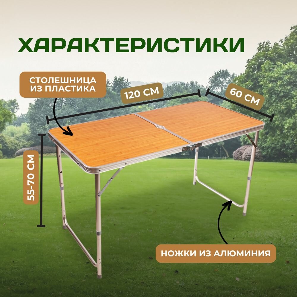 Стол туристический складной, 120х60х70 см, цвет под дерево