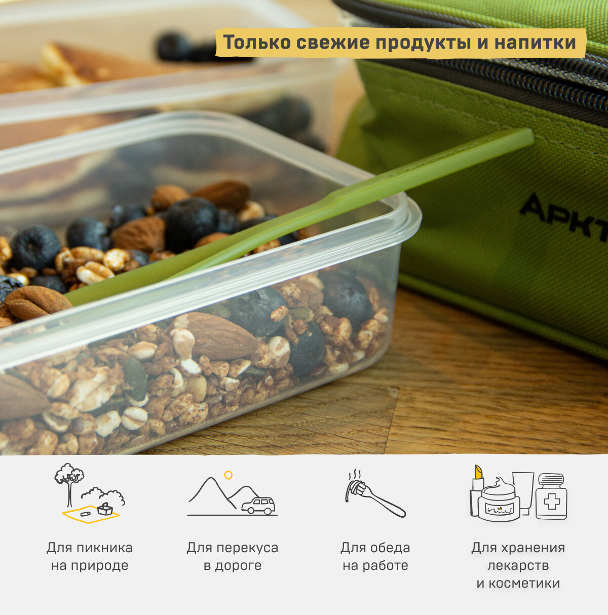 Арктика Ланч-сумка Арктика с контейнером и приборами зеленая 2л