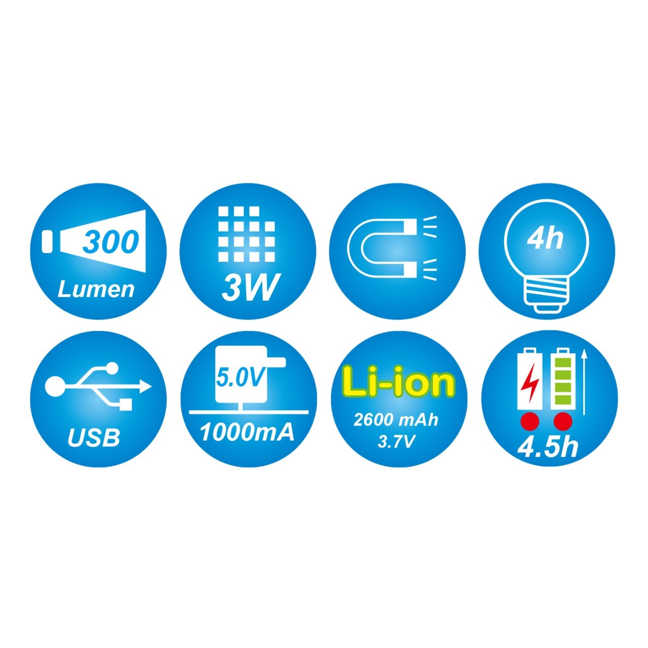 Светодиодный фонарь прожекторный, аккумуляторный многофункциональный IP54 15W