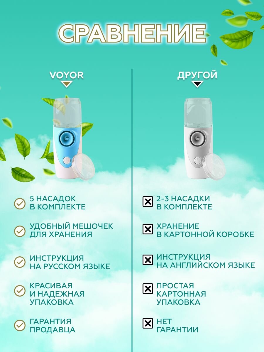 Ингалятор небулайзер детский/взрослый портативный, бесшумный, паровой, аккумуляторный, переносной с насадками/от простуды, для профилактики и лечения заболеваний носа и горла