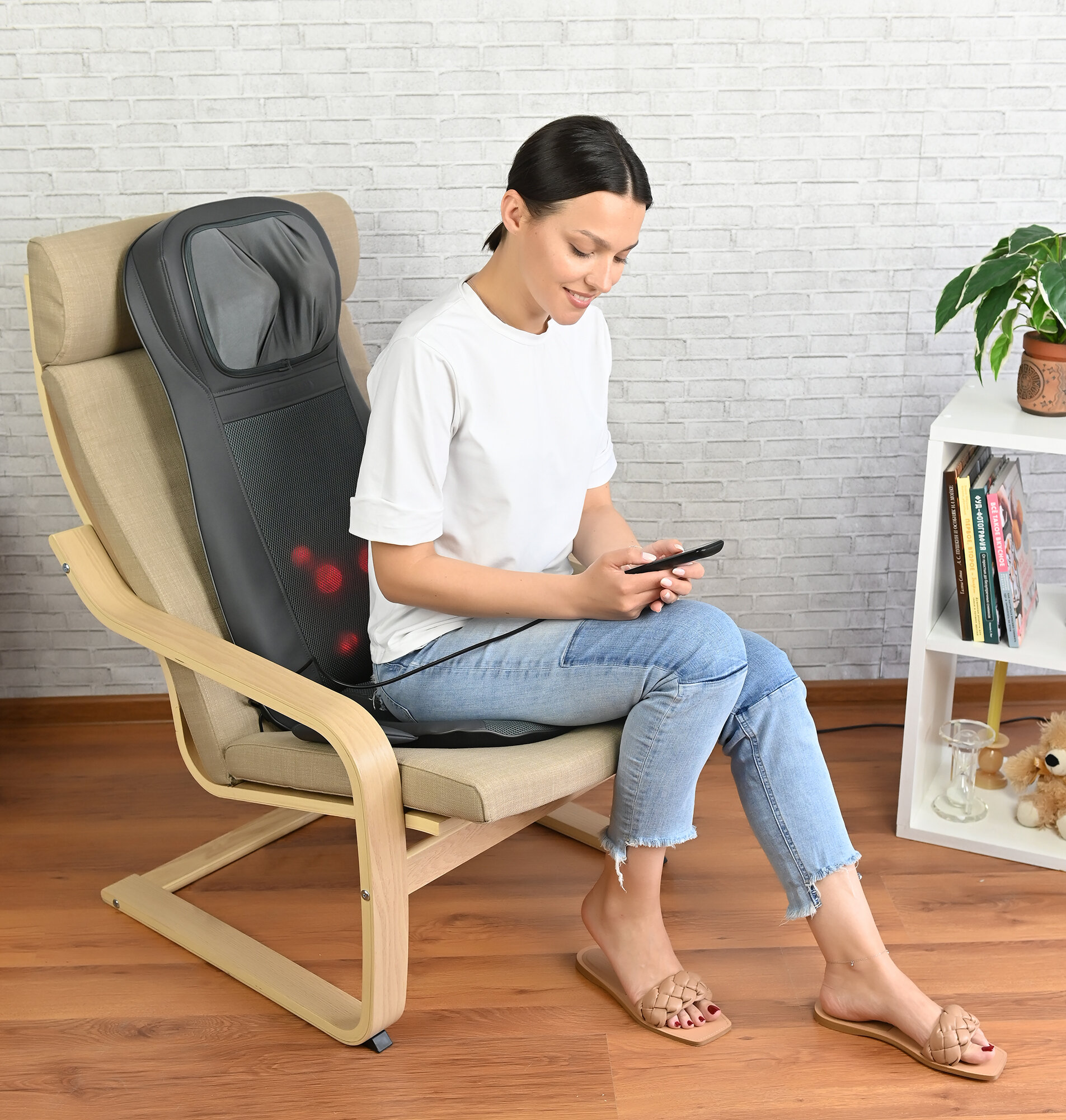 | Минусы: | Для высоких, длина спинки на рост 162 высоковата. Чтобы промассировать шею, нужна подушечка под попу. |
