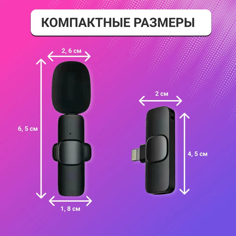 Микрофон петличный беспроводной, с шумоподавлением, петличка, для мобильного телефона, разъем Lightning, для Iphone, черный, 2шт