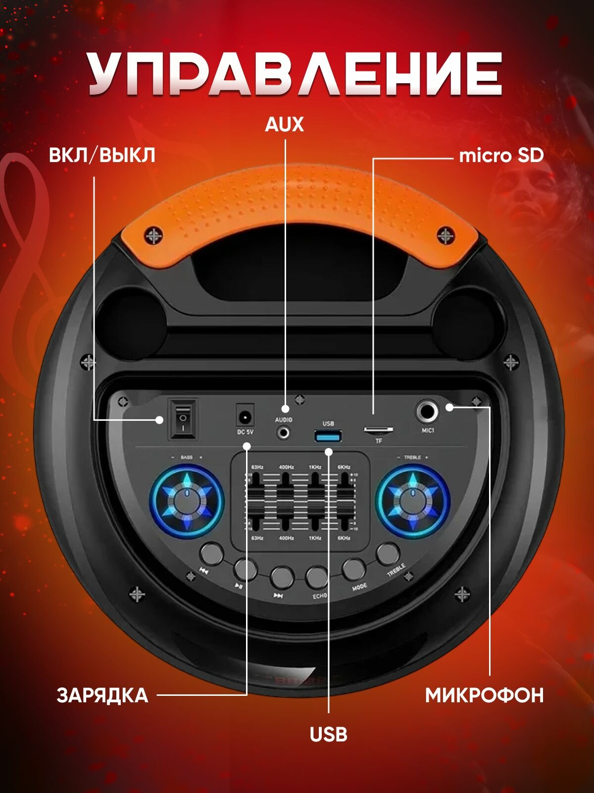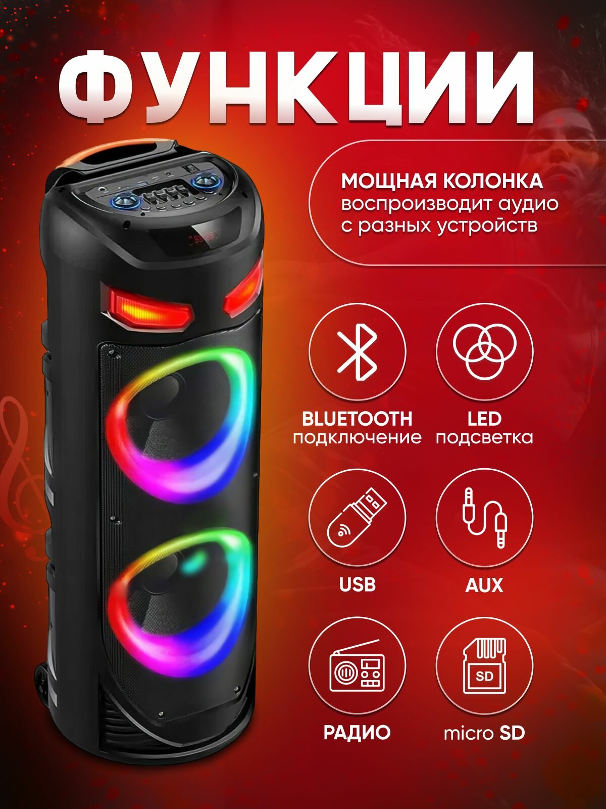Купить Портативная акустическая система - Беспроводная колонка с микрофоном / Большая колонка с поддержкой FM AUX USB TF / Колонка с подсветкой / bluetooth динамик