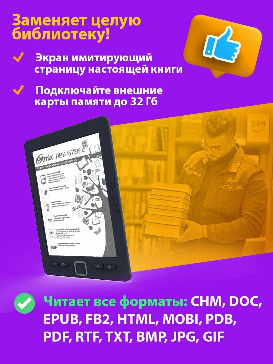 6" Электронная книга RITMIX RBK-678FL 1024x758, E-Ink, 4 ГБ, черный интересное: