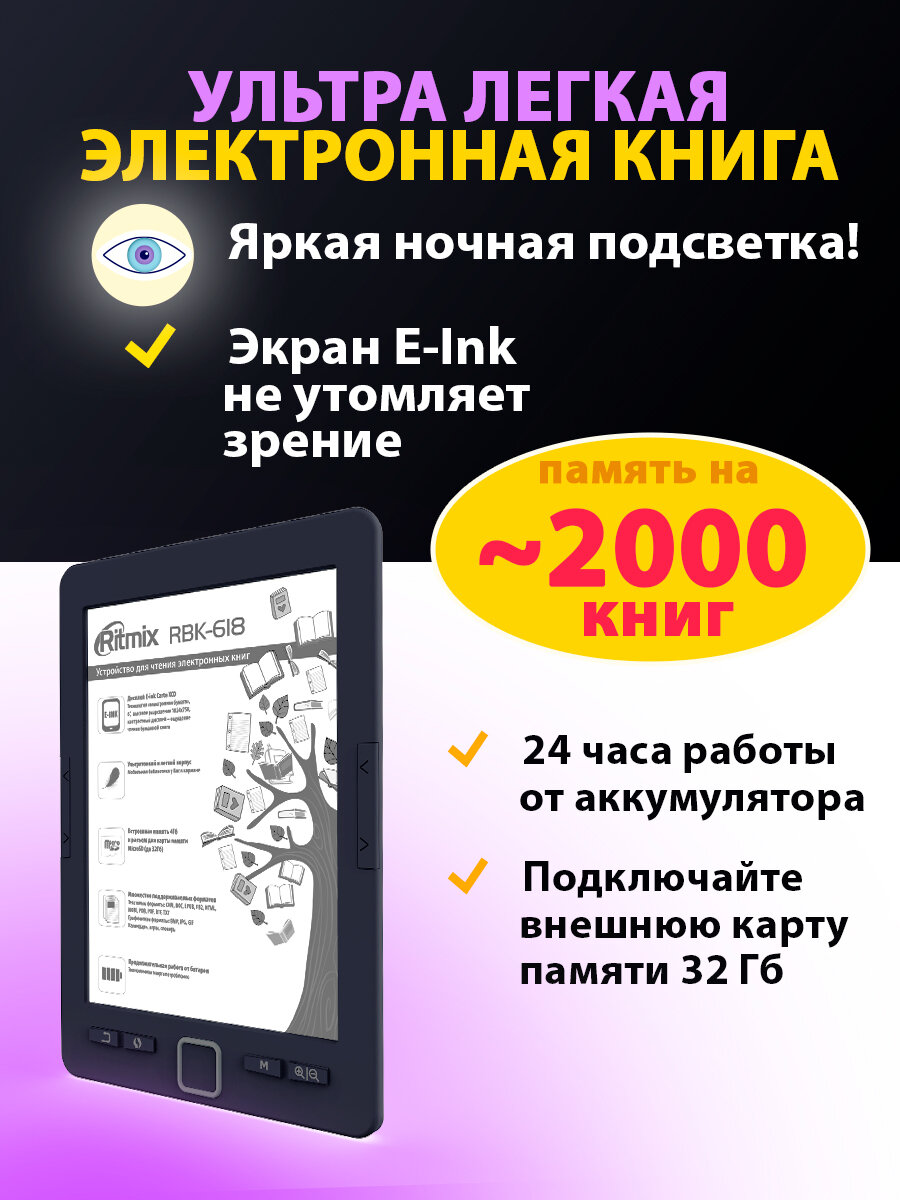 Ниже Вы можете прочитать отзывы на 6" Электронная книга RITMIX RBK-678FL 1024x758, E-Ink, 4 ГБ, черный, ознакомится с подробными характеристиками, посмотреть интересные обзоры и фотографии на 6" Электронная книга RITMIX RBK-678FL 1024x758, E-Ink, 4 ГБ, черный.