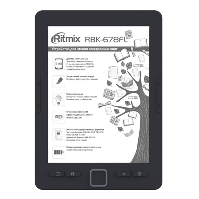 Купить 6" Электронная книга RITMIX RBK-678FL 1024x758, E-Ink, 4 ГБ, черный