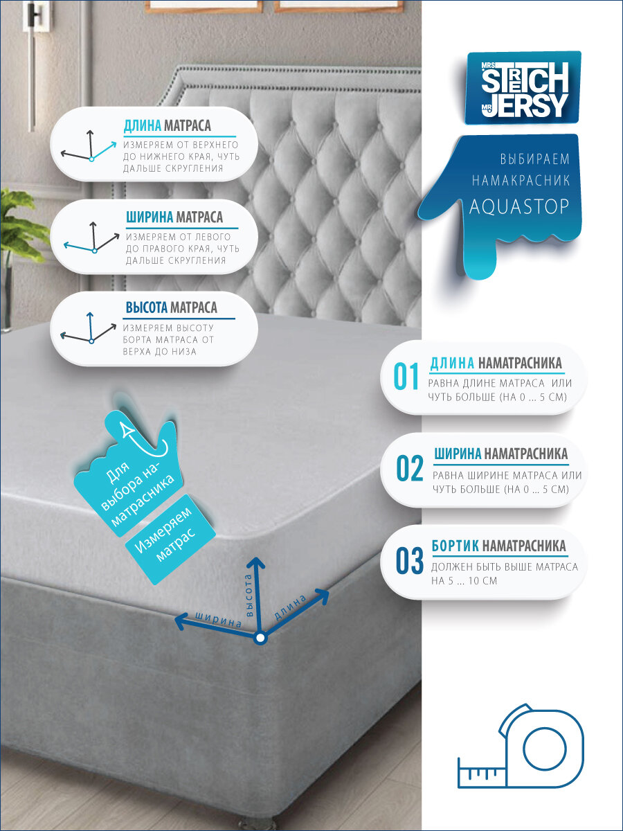 Наматрасник непромокаемый Stretch Jersy водонепроницаемый, 180 х 200 х 25см, голубой