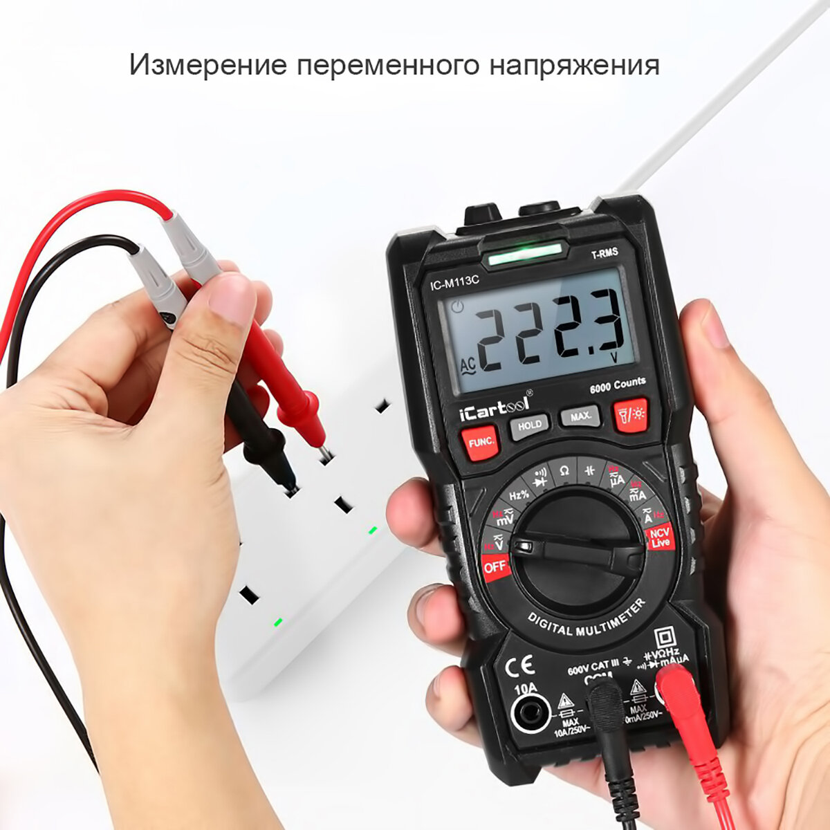 Мультиметр цифровой CATIII 600 V, TrueRMS, AC/DC iCartool IC-M113C