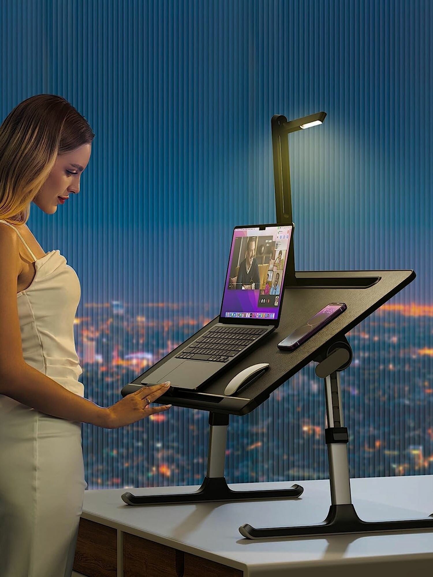 Купить Столик для ноутбука в кровать складной с беспроводной лампой, черный, МДФ, SAIJI Ultra 8