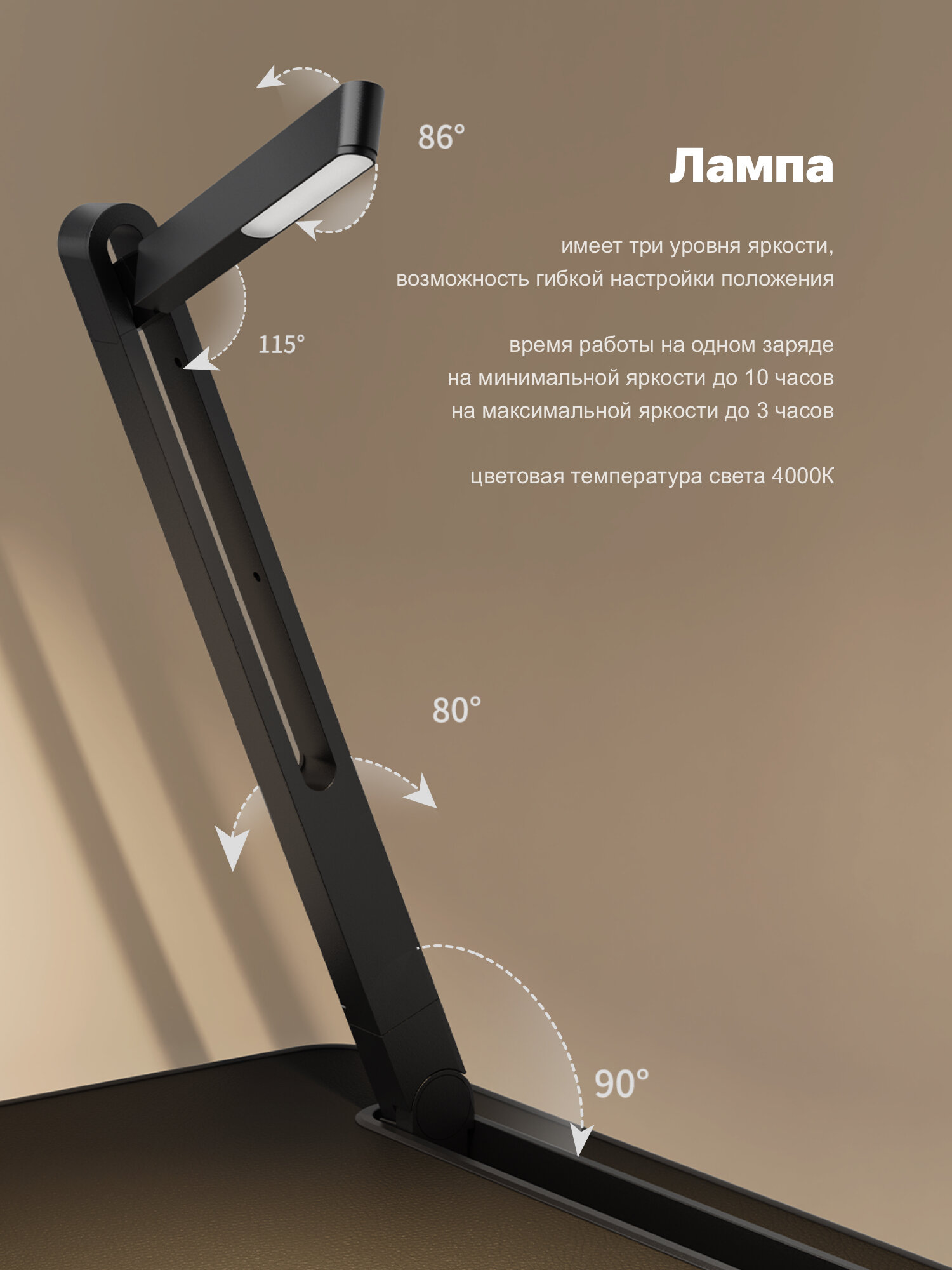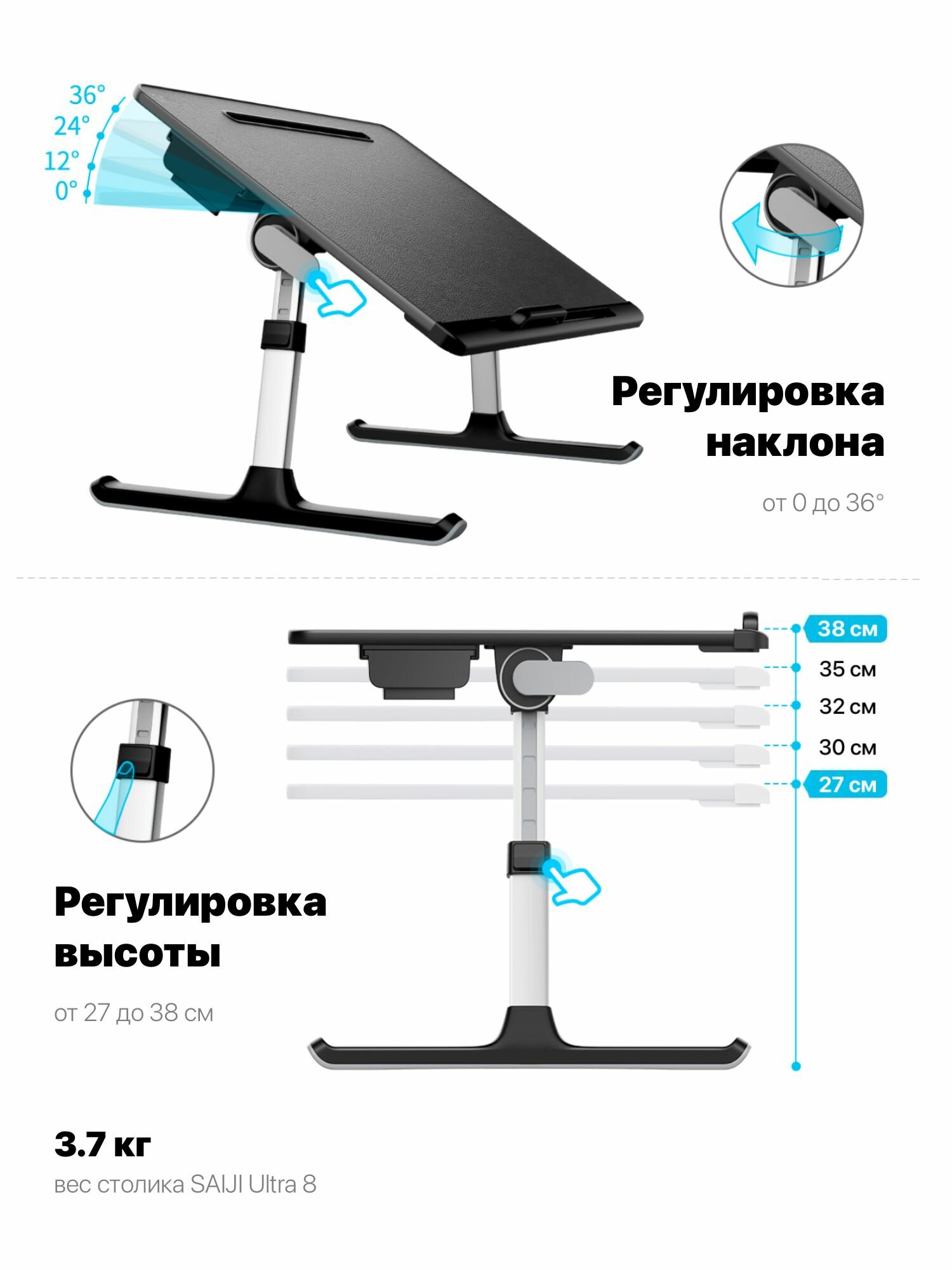 Столик для ноутбука в кровать складной с беспроводной лампой, черный, МДФ, SAIJI Ultra 8 интересное: