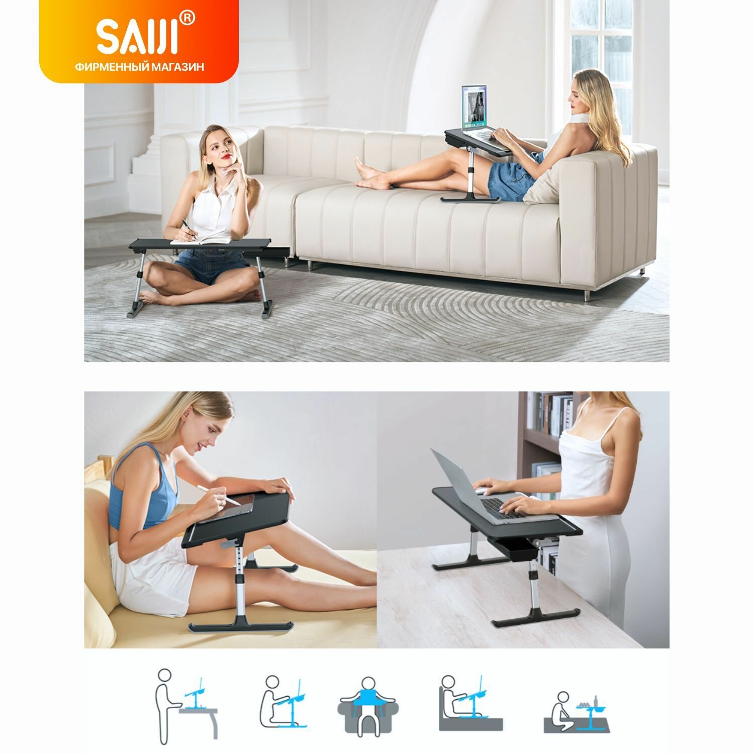 Столик для ноутбука в кровать складной, черный, МДФ, SAIJI интересное: