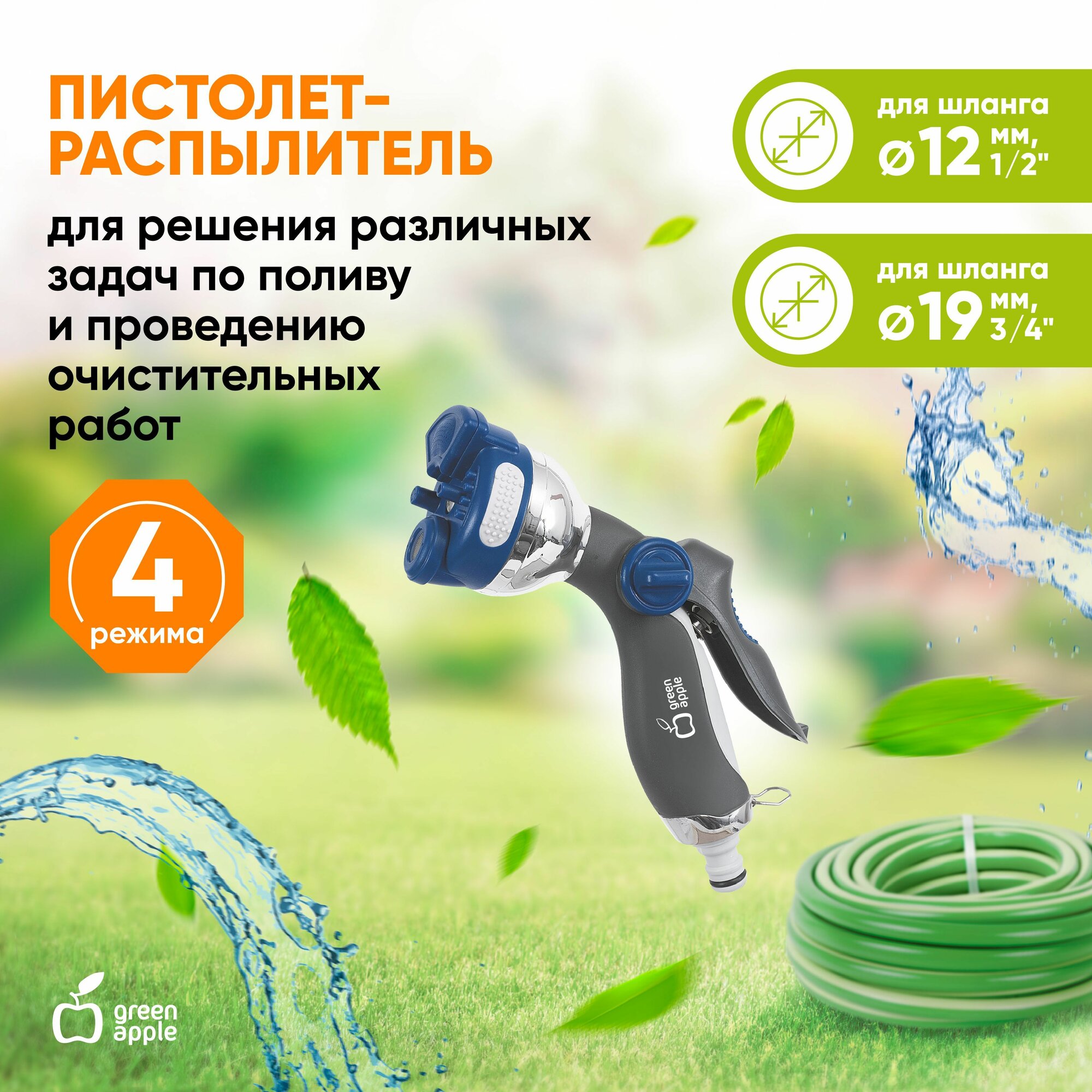 Пистолет-распылитель 4 режима металл GREEN APPLE