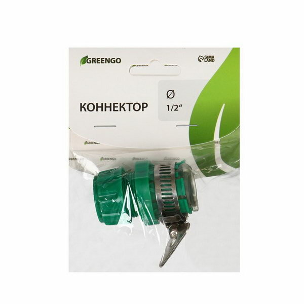 Greengo Коннектор с хомутом, крепление на кран 1/2" (12 мм), цанговое соединение 1/2" (12 мм), пластик, резина
