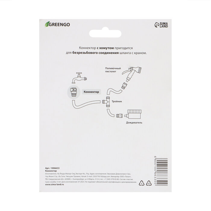 Greengo Коннектор с креплением на кран, 1/2" (12 мм) — 1/2" (12 мм), с хомутом, пластик, резина интересное: