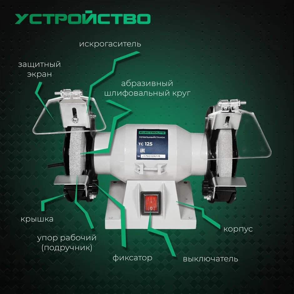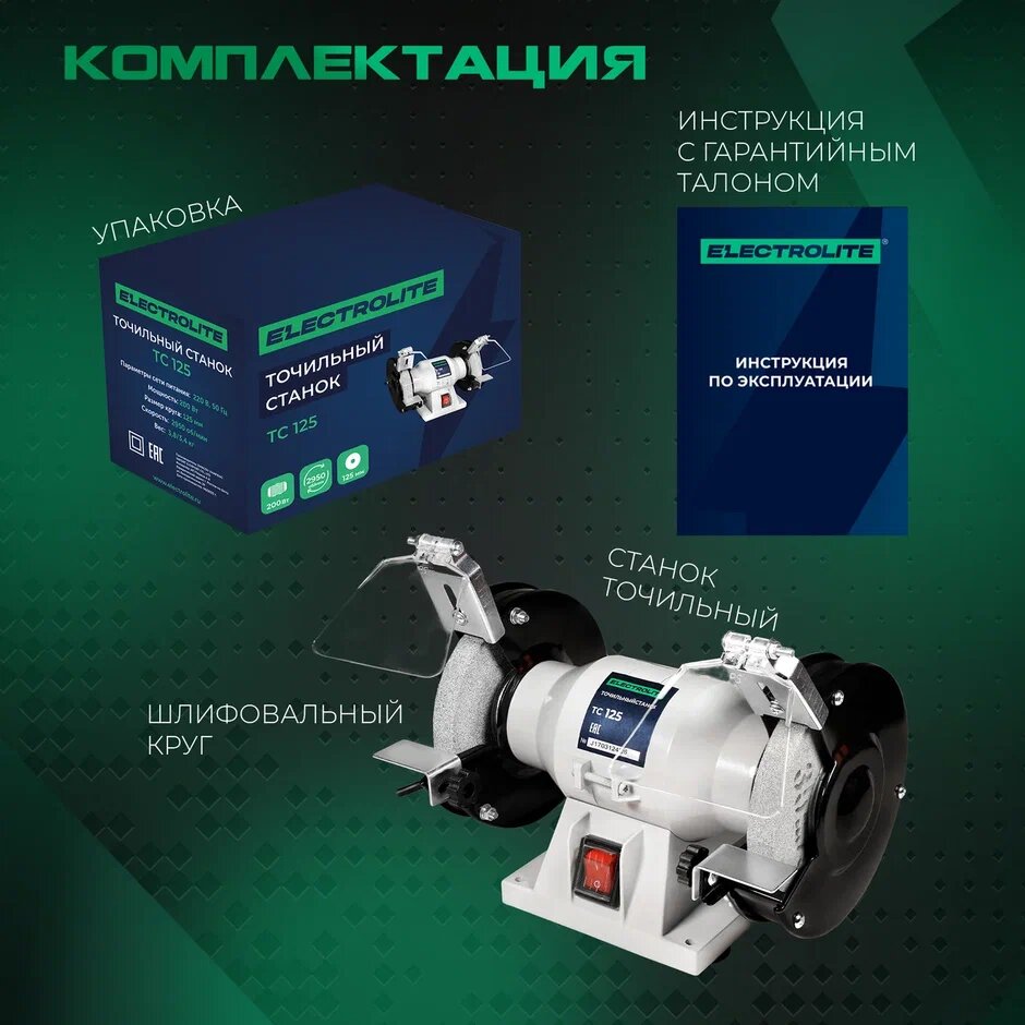 Точильный станок / Точило электрическое / Заточной станок / Наждак электрический ELECTROLITE ТС 125 ( 125 мм диск, 200 Вт мощность ) интересное:
