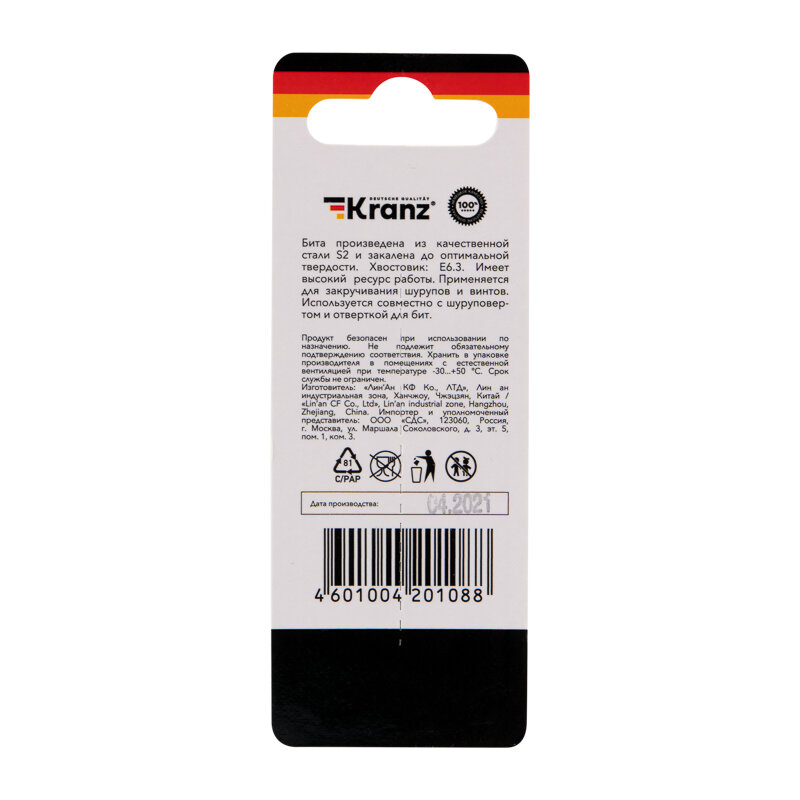 Бита для шуруповерта Torx T10х50 мм (2 шт./уп.) Kranz 1 упак арт. KR-92-0425-1 интересное: