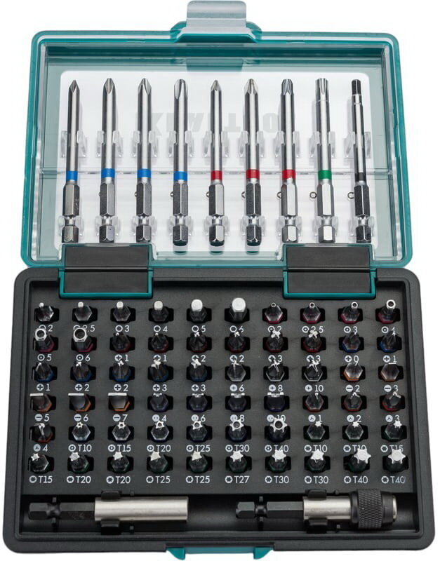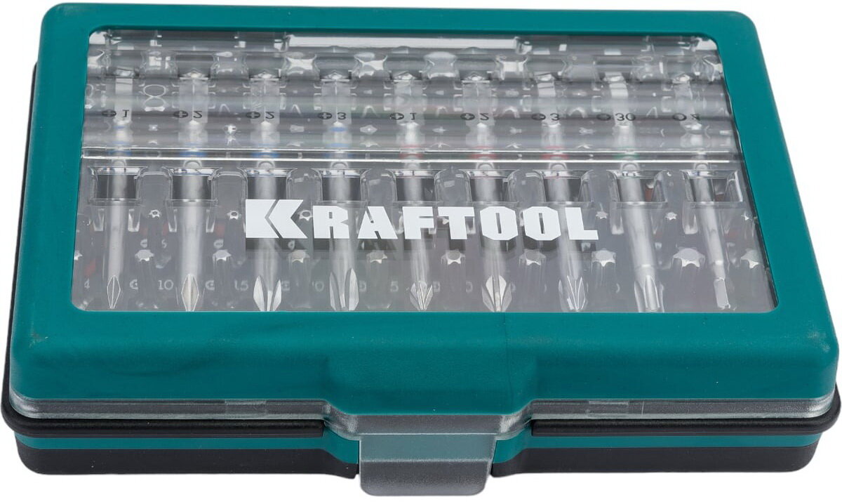 Набор KRAFTOOL: Биты ″C-Drive 71″ многофункциональные, CR-MO, адаптеры в ударопрочном компактном боксе, цветная маркировка типов шлицов. 71 предмет