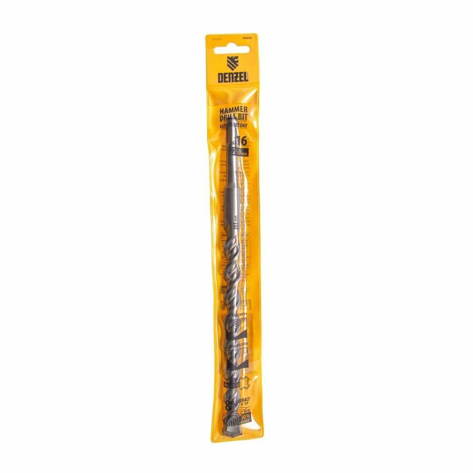Бур по бетону, двойная спираль, Cobalt W-tip, 16x260 мм, SDS PLUS, DENZEL 705038