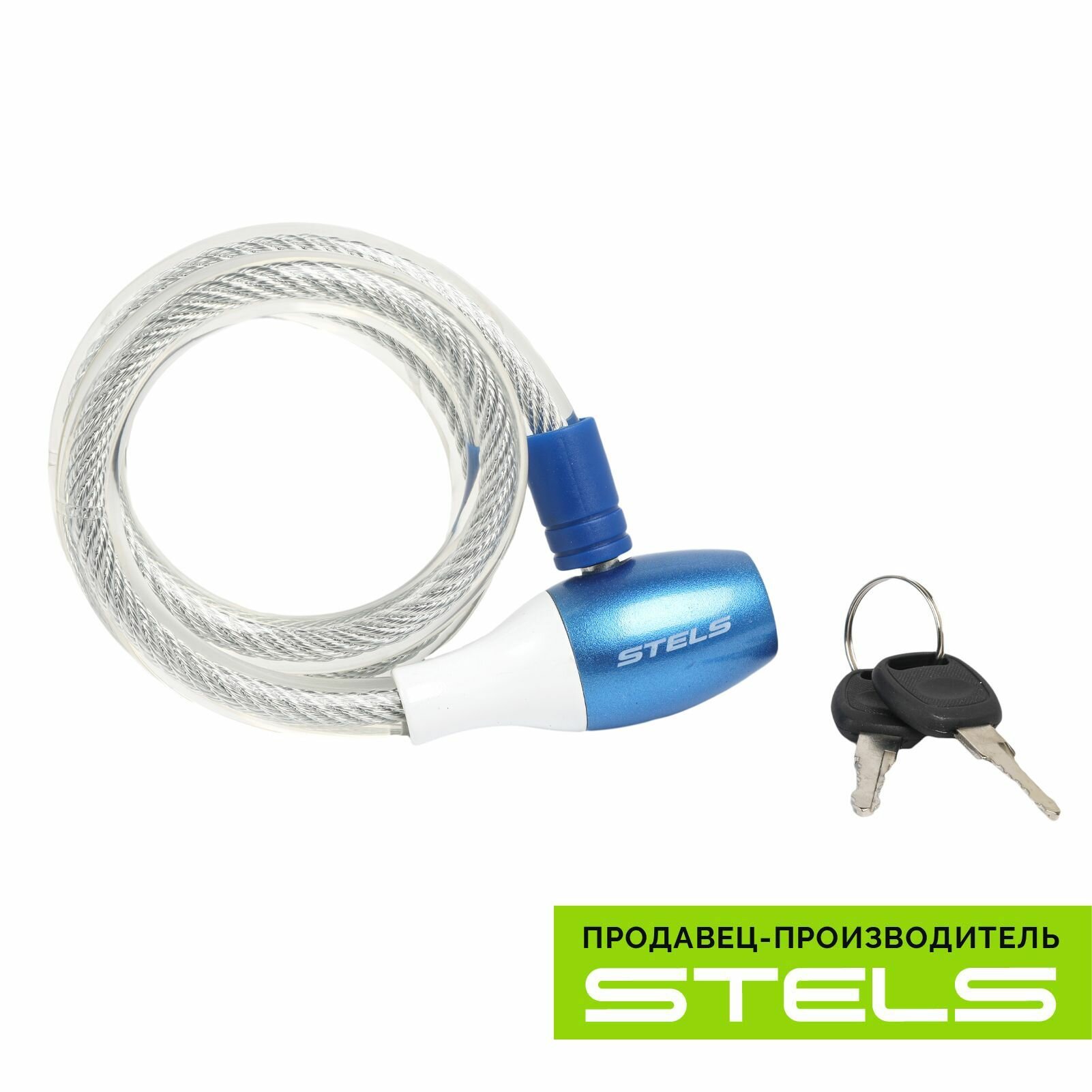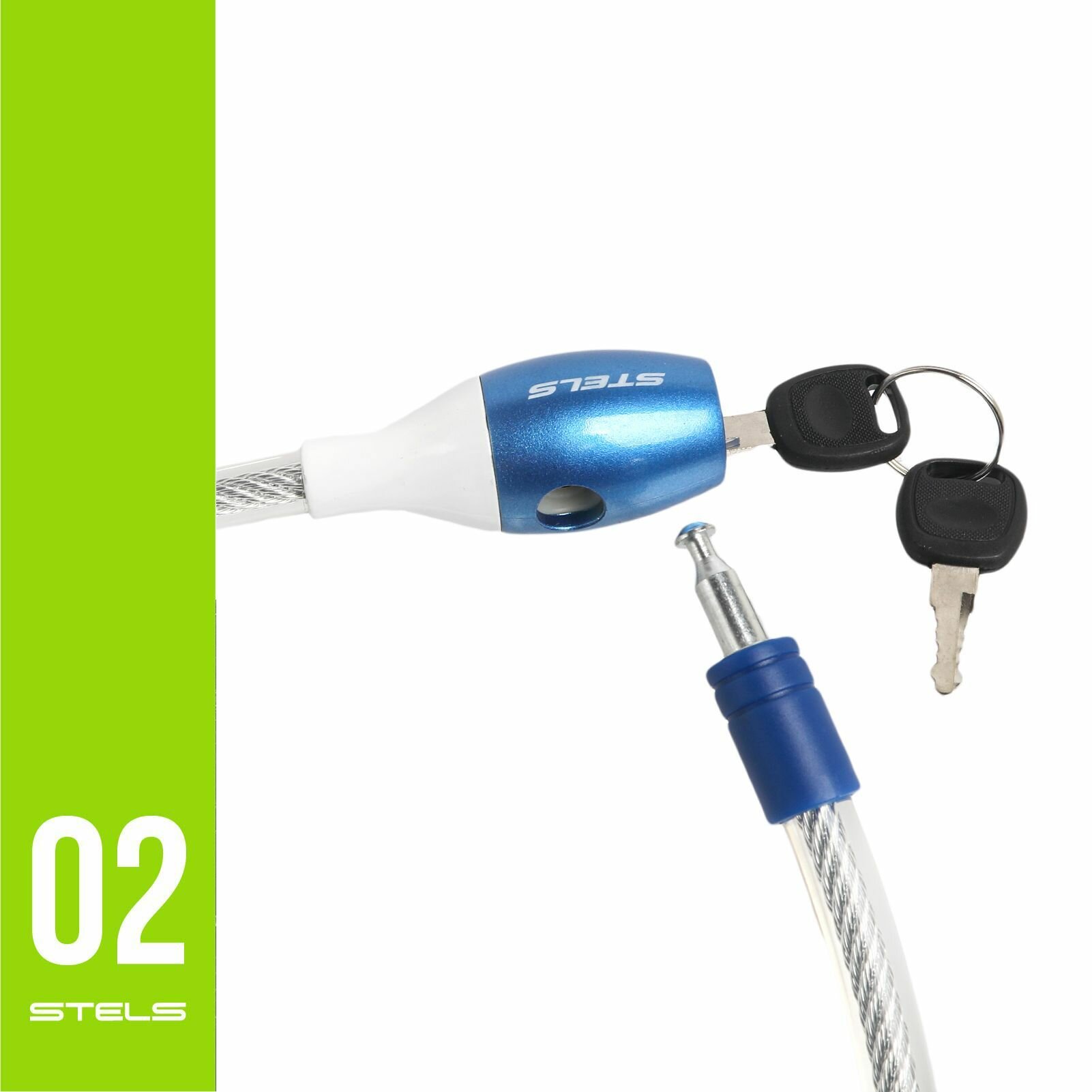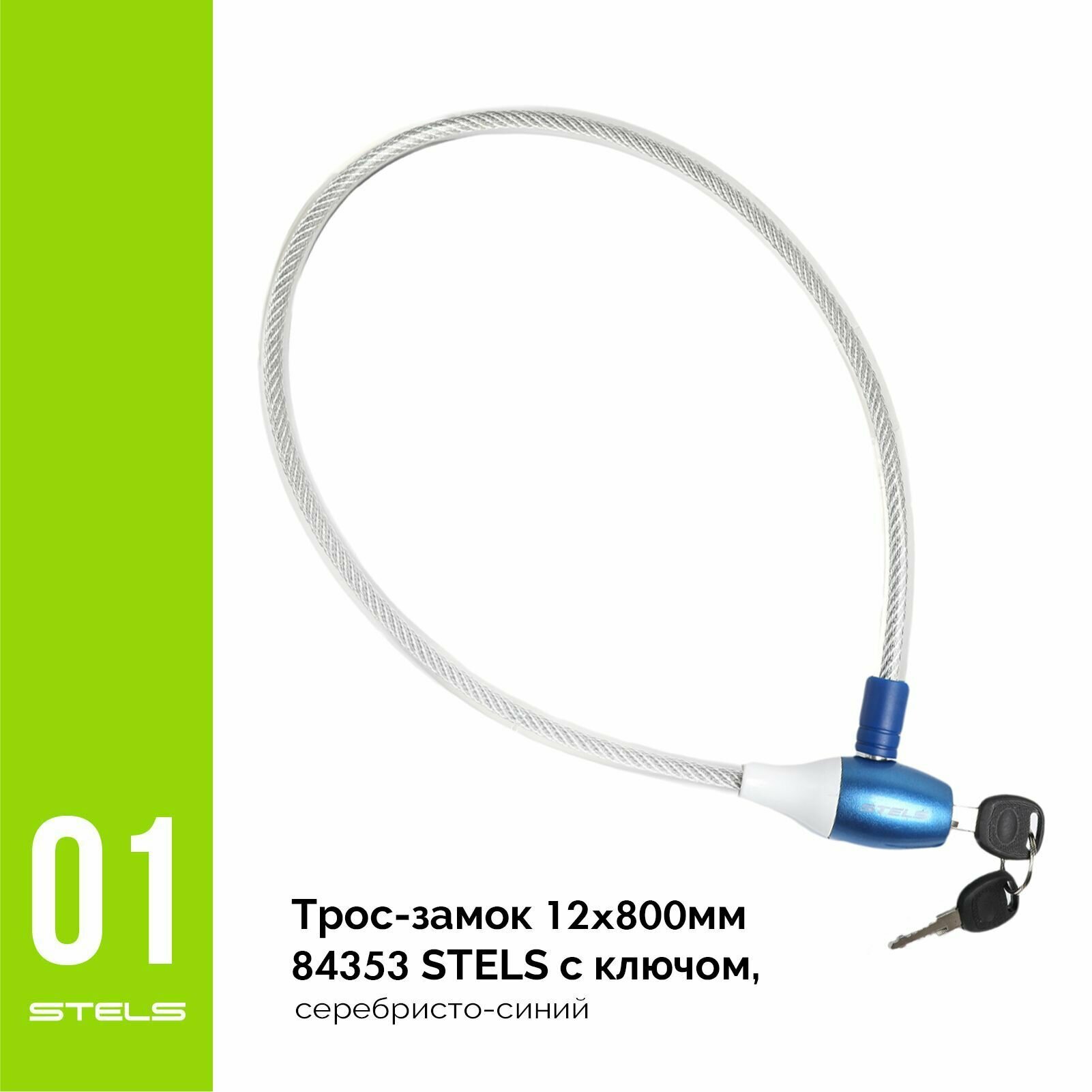 Трос-замок STELS 12х800мм 84353 с ключом, серебристо-синий NEW