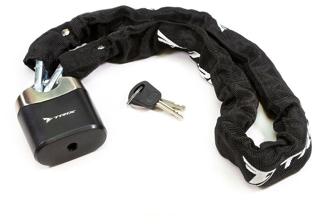 Купить Замок велосипедный TRIX цепь, навесной замок, с ключами, 8×900мм, в тканевой оплетке, стальной, черный