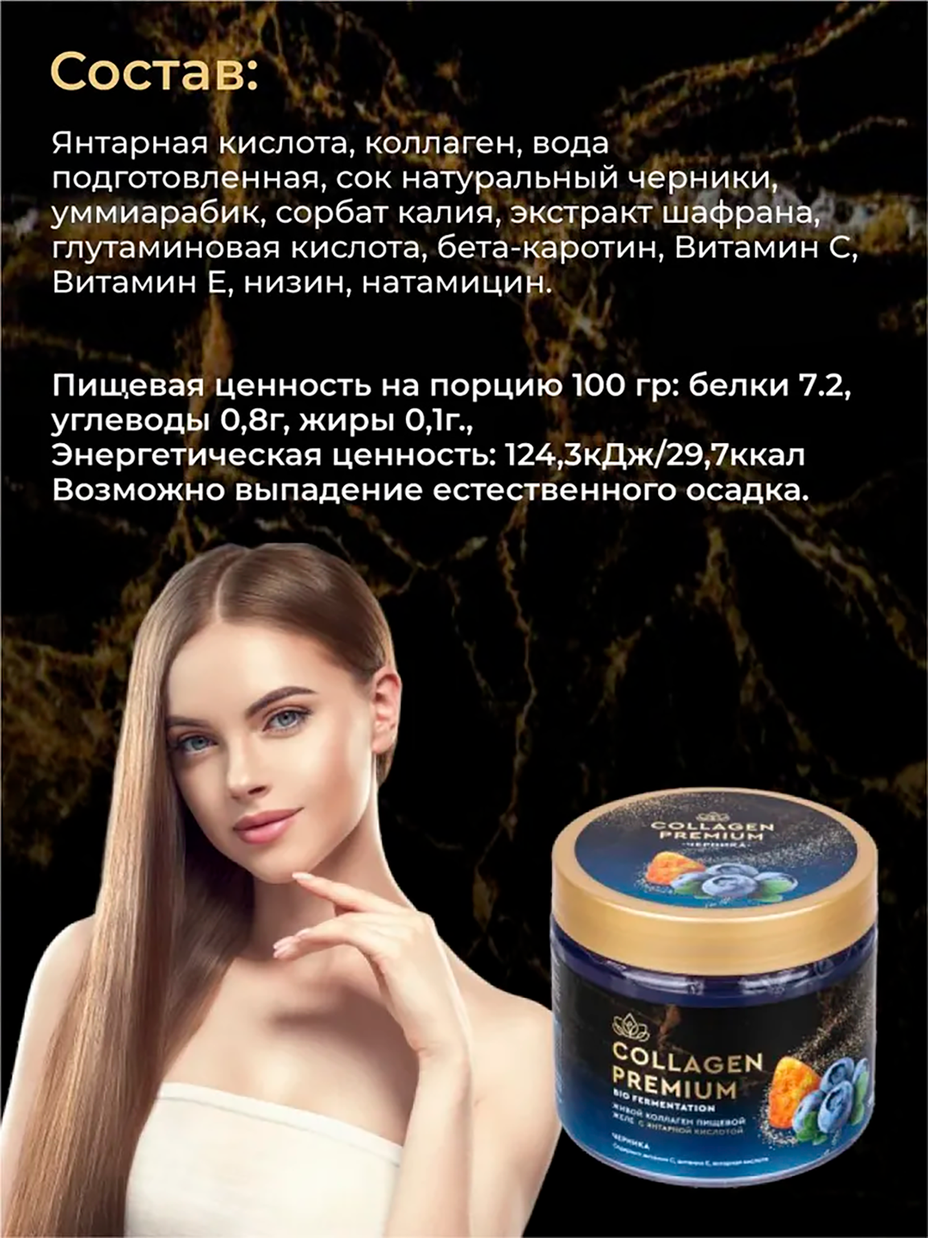 Купить Натуральный пищевой коллаген в желе Collagen Premium с черникой и янтарной кислотой 380 гр